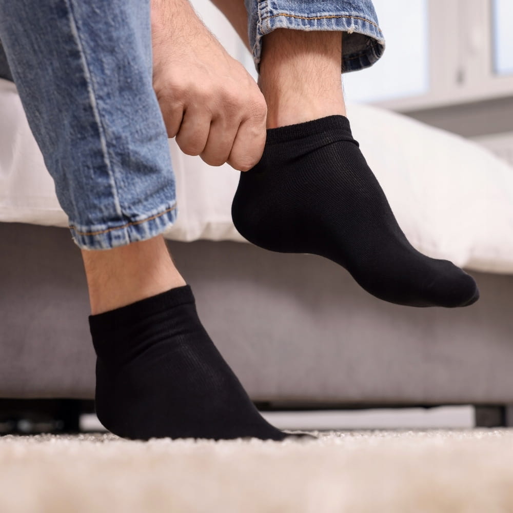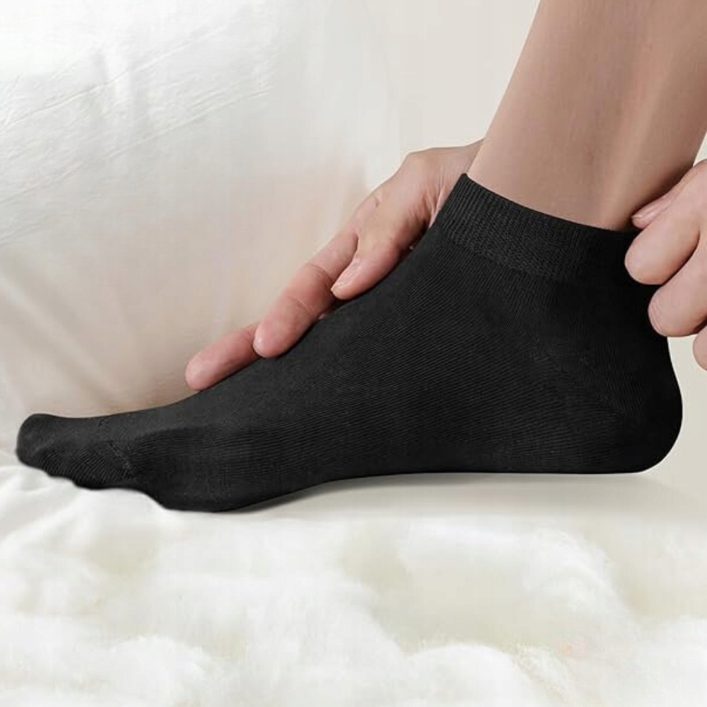 ▶ Włókno bambusowe słynie z naturalnych właściwości termoregulacyjnych, utrzymuje optymalną temperaturę stóp, zapobiegając nadmiernemu poceniu się.