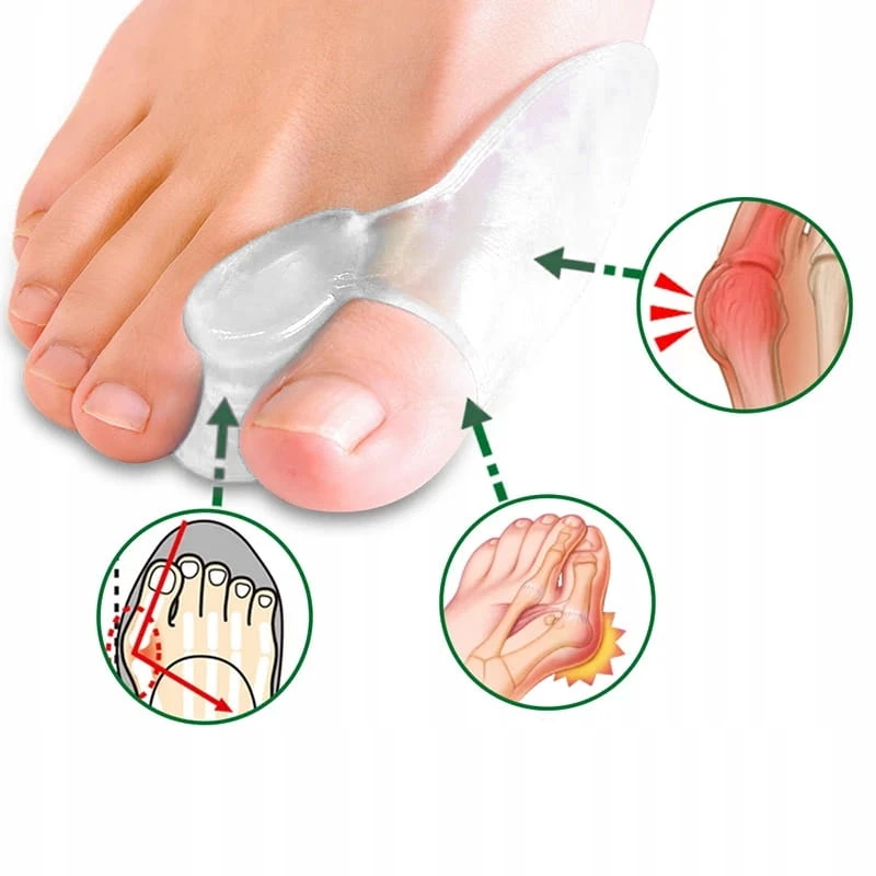 Klin rozdziela wygięte i schodzące się palce nóg ochraniają je przed otarciem i uciskiem dzięki użytemu materiałowi gwarantują doskonałe trzymanie na miejscu.