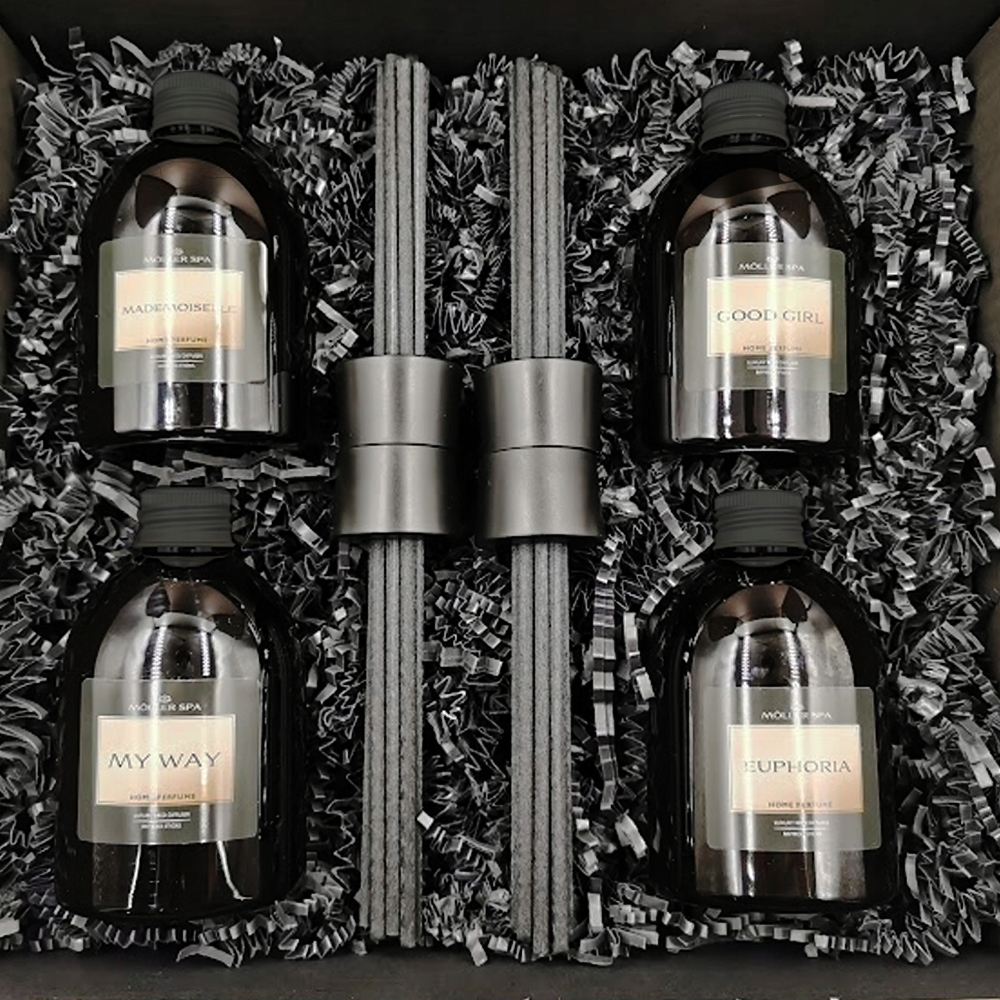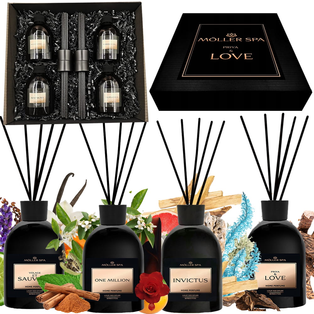 EKSKLUZYWNY ZESTAW PREZENTOWY 4x ODŚWIEŻACZY ZAPACHOWYCH 250ML Möller SPA - MĘSKIE ZAPACHY !!!