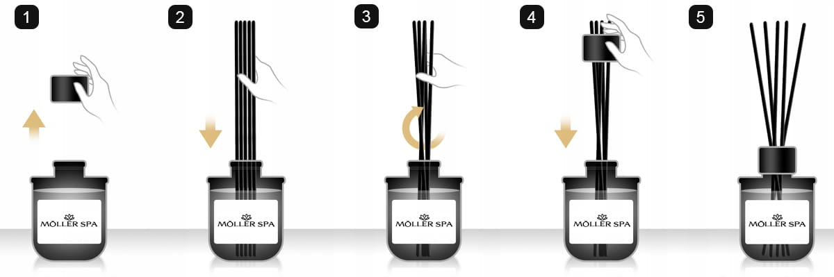 ✅ Przy użyciu 2 patyczków dyfuzor rozprzestrzenia zapach do 90 dni. Przy większej ilości zapach jest intensywniejszy, ale czas działania krótszy.