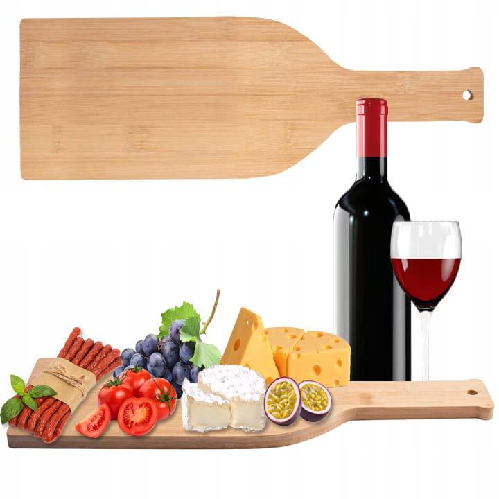 Deska do serwowania została wyrzeźbiona z drewna bambusowego w kształcie butelki wina. Wystarczy, że „wypełnisz” ją pysznymi przekąskami.