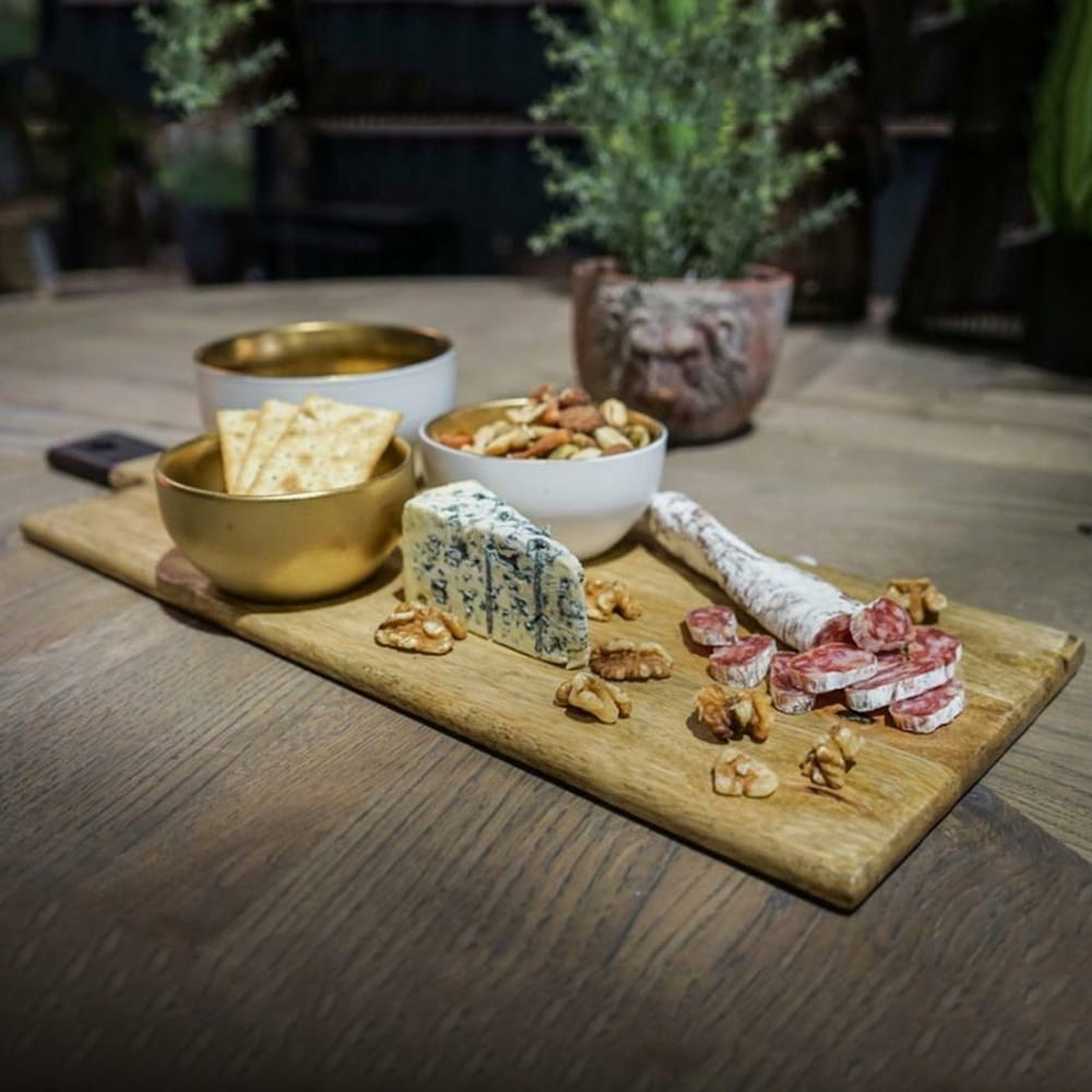 Uchwyt pozwala podawać przekąski lub inne potrawy bez dotykania ich. Dziurka w uchwycie jest praktyczna i pozwala zawiesić deski do serwowania na haczykach kuchennych aby udekorować Twój dom!