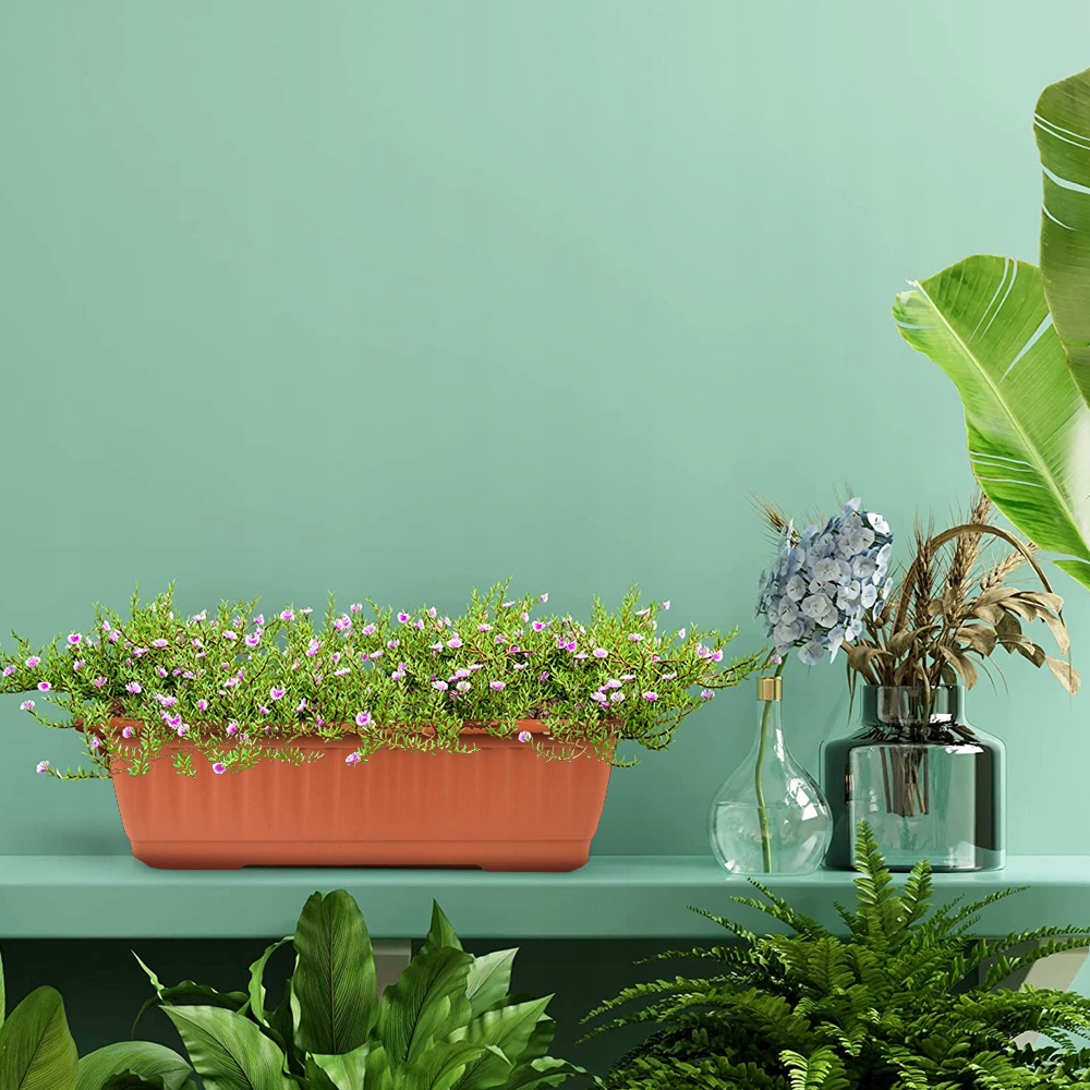 ▶ Skrzynka balkonowa o prostokątnym kształcie i delikatnych tłoczeniach na powierzchni to uniwersalny produkt świetnie nadający się do hodowli najróżniejszych typów roślin: kwiatów, ziół czy warzyw. Można zamocować ją na balustradzie balkonu albo postawić na posadzce czy parapecie.