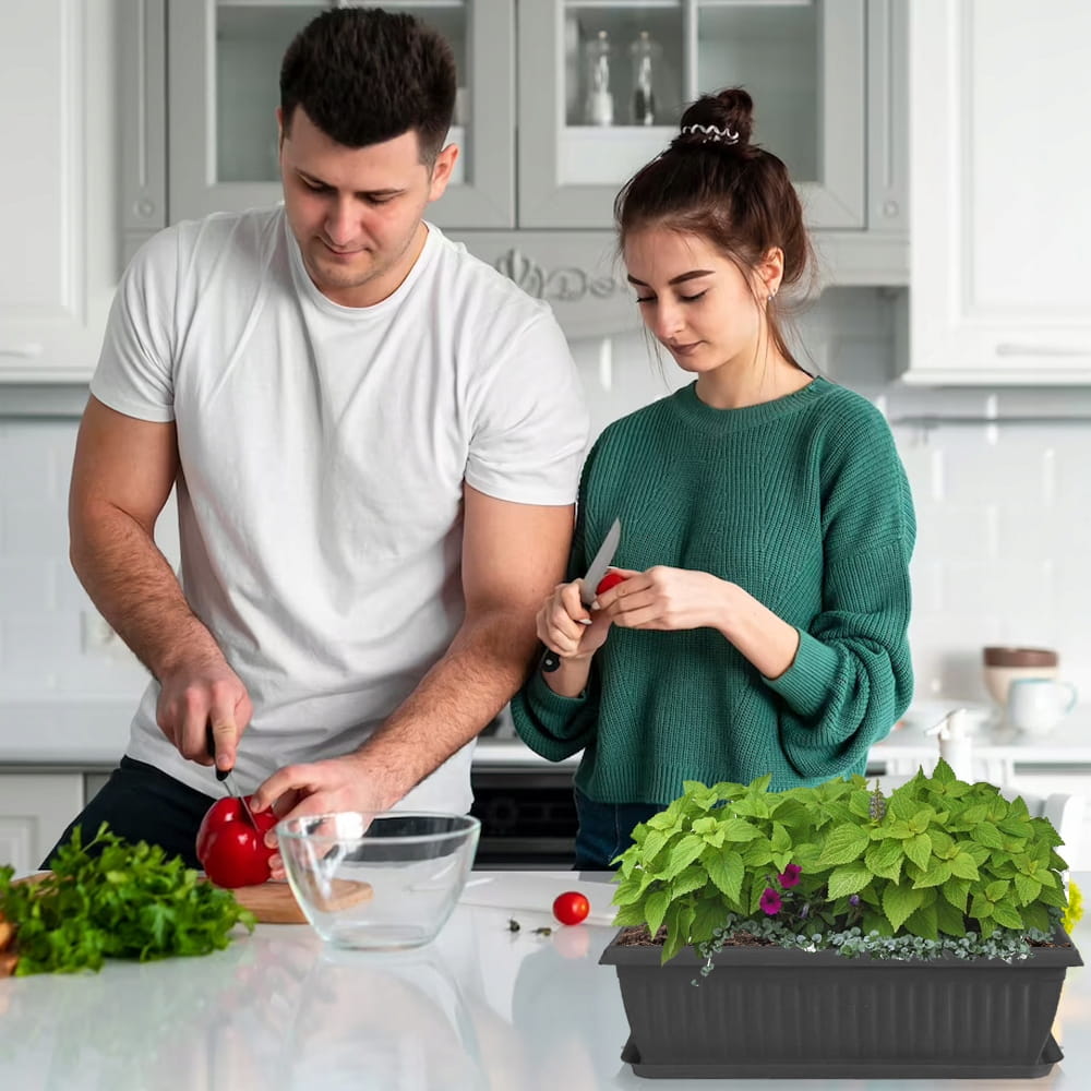 ✅ Skrzynka na kwiaty posiada regulowany dopływ wody dla równomiernego i długotrwałego podlewania. Zawiera urządzenie do napełniania i wskaźnik poziomu wody. Zintegrowana funkcja odwadniania zapobiega zbyt wysokiemu poziomowi wody.