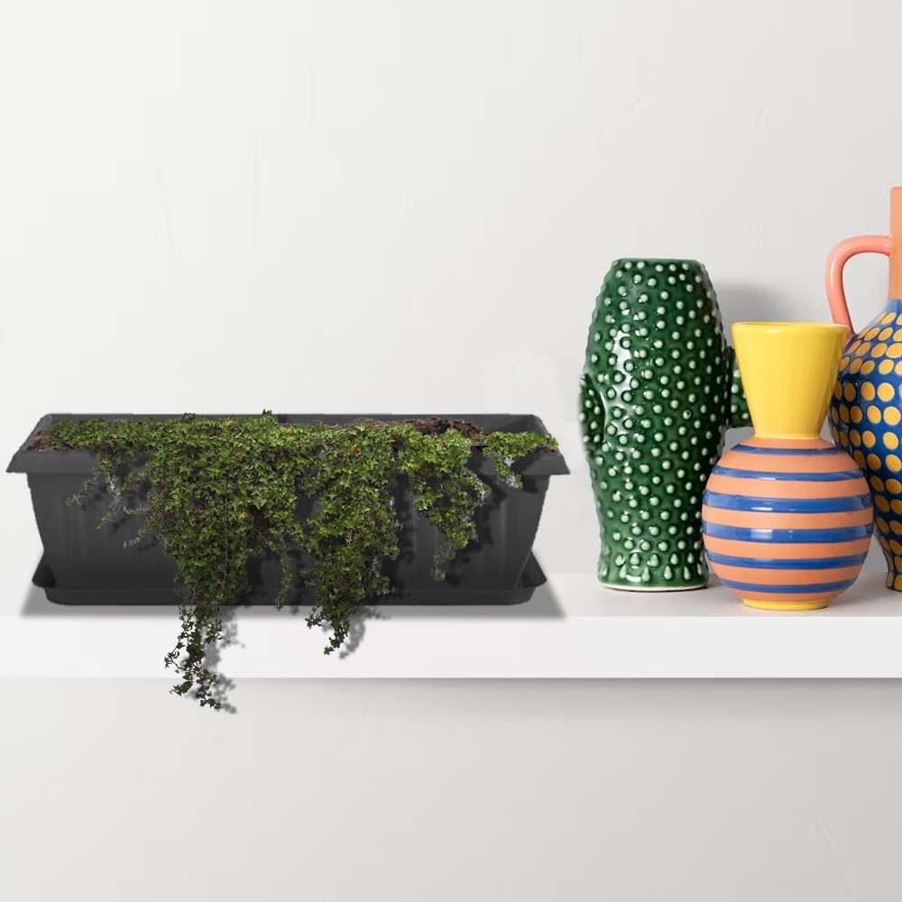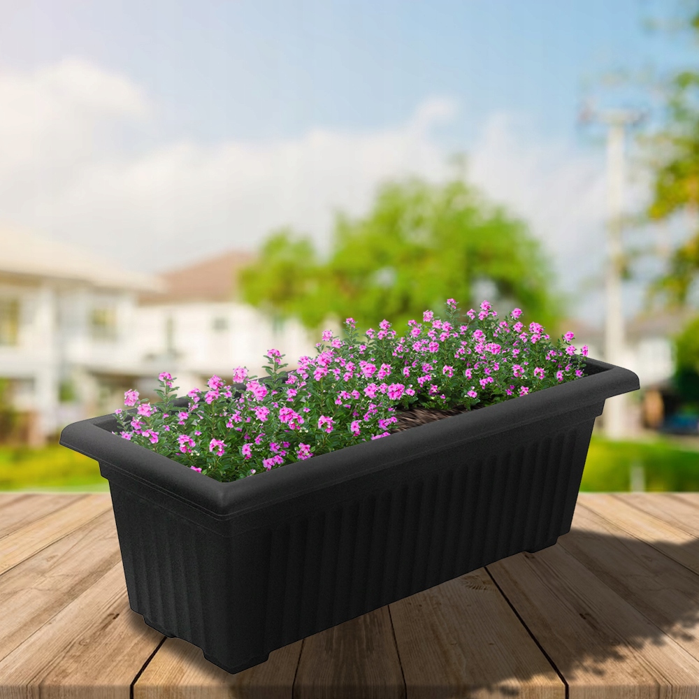 ▶ Skrzynka balkonowa o prostokątnym kształcie i delikatnych tłoczeniach na powierzchni to uniwersalny produkt świetnie nadający się do hodowli najróżniejszych typów roślin: kwiatów, ziół czy warzyw. Można zamocować ją na balustradzie balkonu albo postawić na posadzce czy parapecie.
