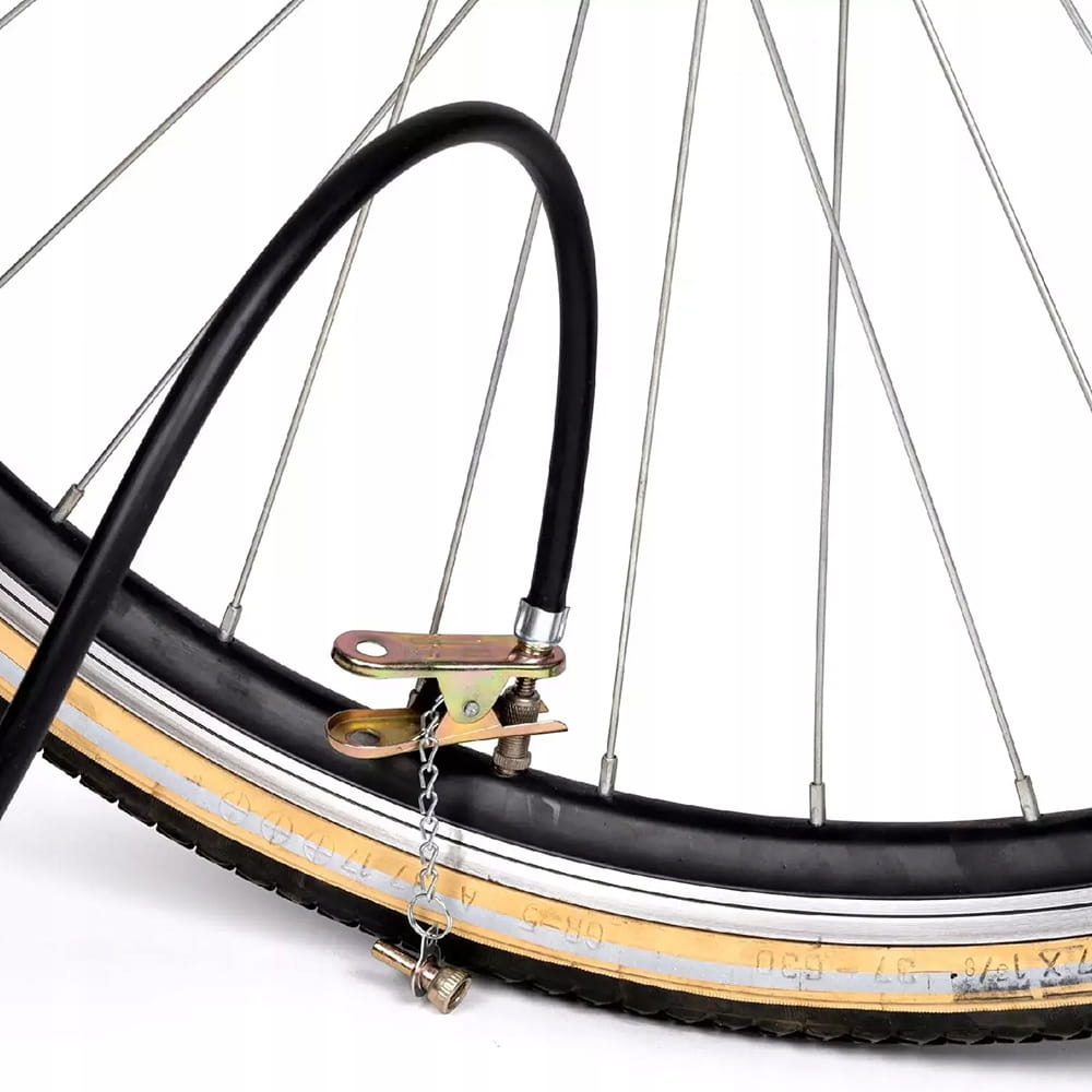 Wężyk ma specjalny zacisk ułatwiający przymocowanie go do opony.