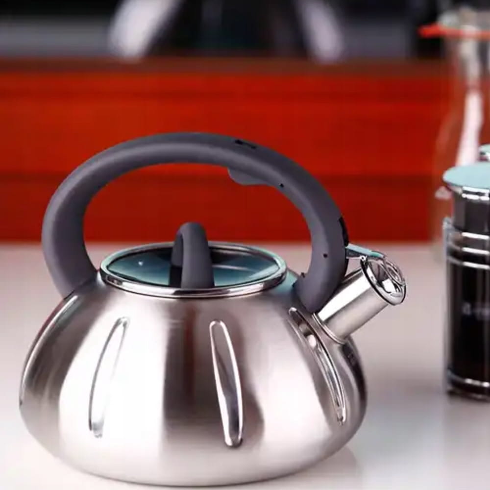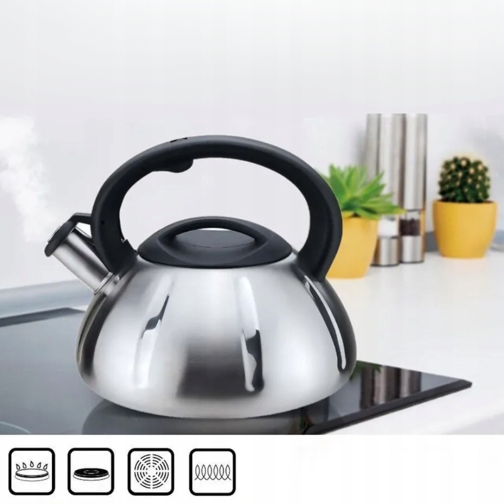 Czajnik został wykonany z materiałów najwyższej jakości. Zrobiony ze stali nierdzewnej z wbudowanym na stałe gwizdkiem i maksymalną pojemnością 3 litrów. Posiada funkcjonalny i nienagrzewający się uchwyt, który stabilnie trzyma się w dłoni.