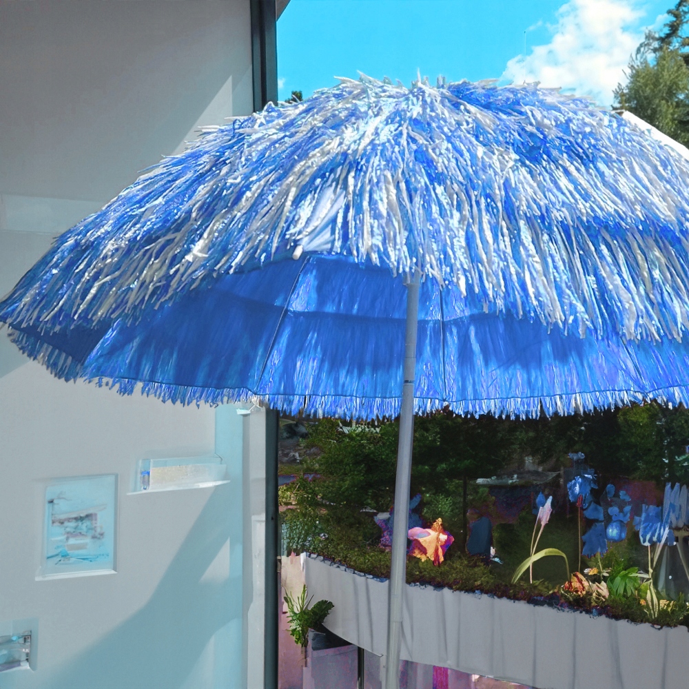 Dostępny w 3 kolorach- róż, beż oraz błękit. Parasol ma unikalny, tropikalny wygląd, który wprowadzi atmosferę Hawajów do każdej przestrzeni.