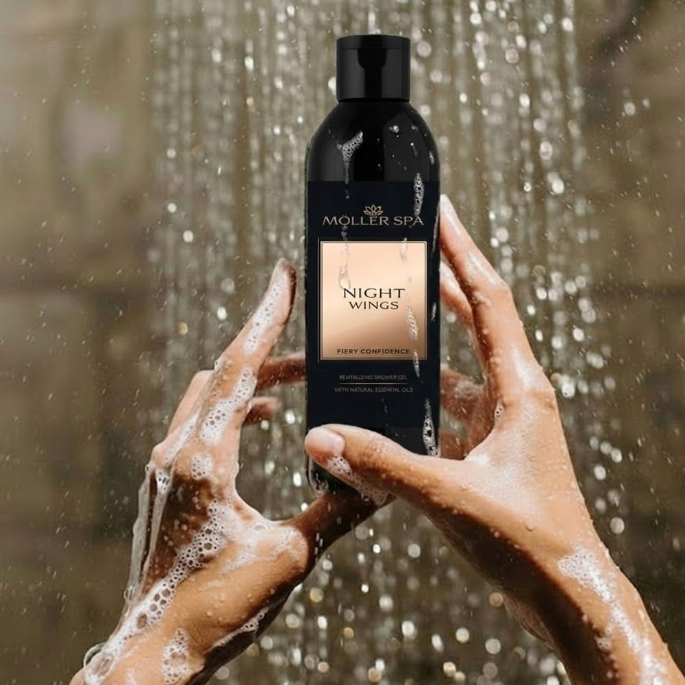 Spraw, aby Twoje ciało poczuło się odświeżone i nieskazitelnie czyste z naszym żelem pod prysznic Night Wings.