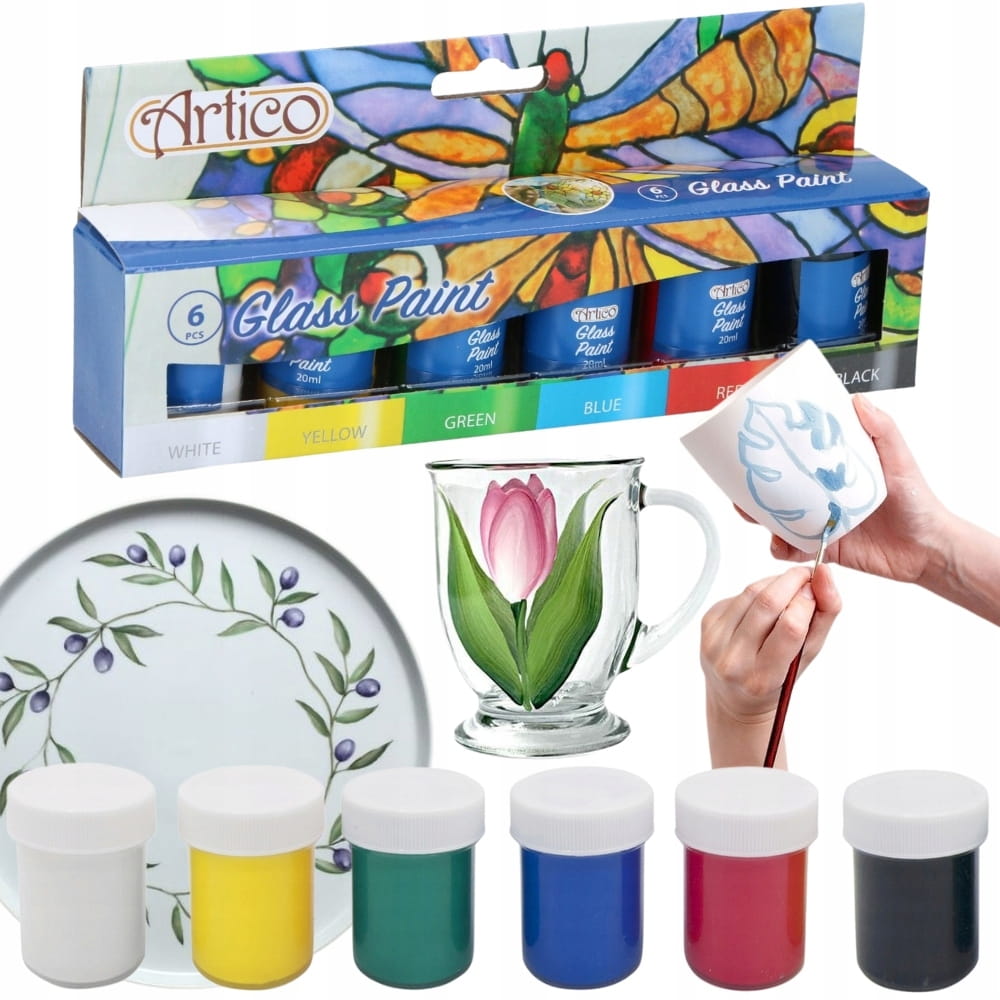 FARBY DO SZKŁA CERAMIKI PORCELANY ZESTAW FARBY WITRAŻOWE 6x20ml ARTICO