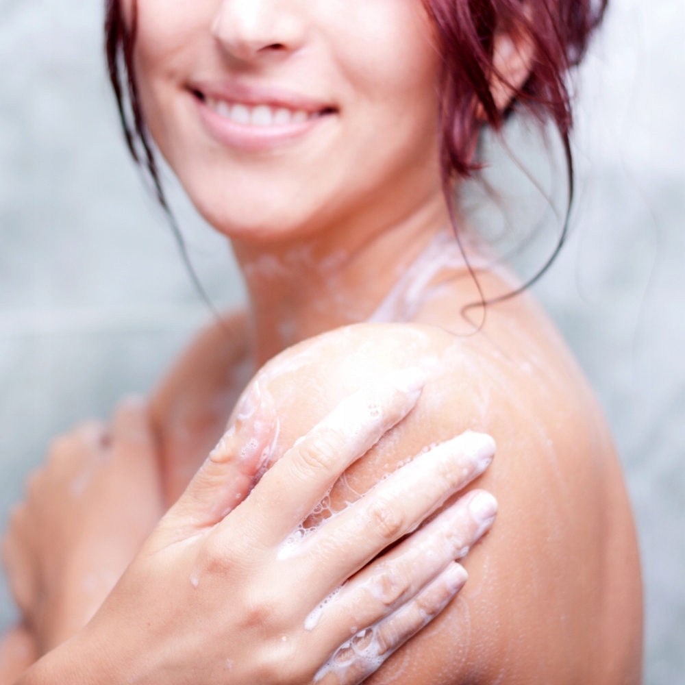 - Nałóż na dłoń niewielką ilość żelu pod prysznic.