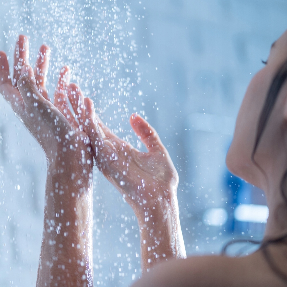 - Nałóż na dłoń niewielką ilość żelu pod prysznic.