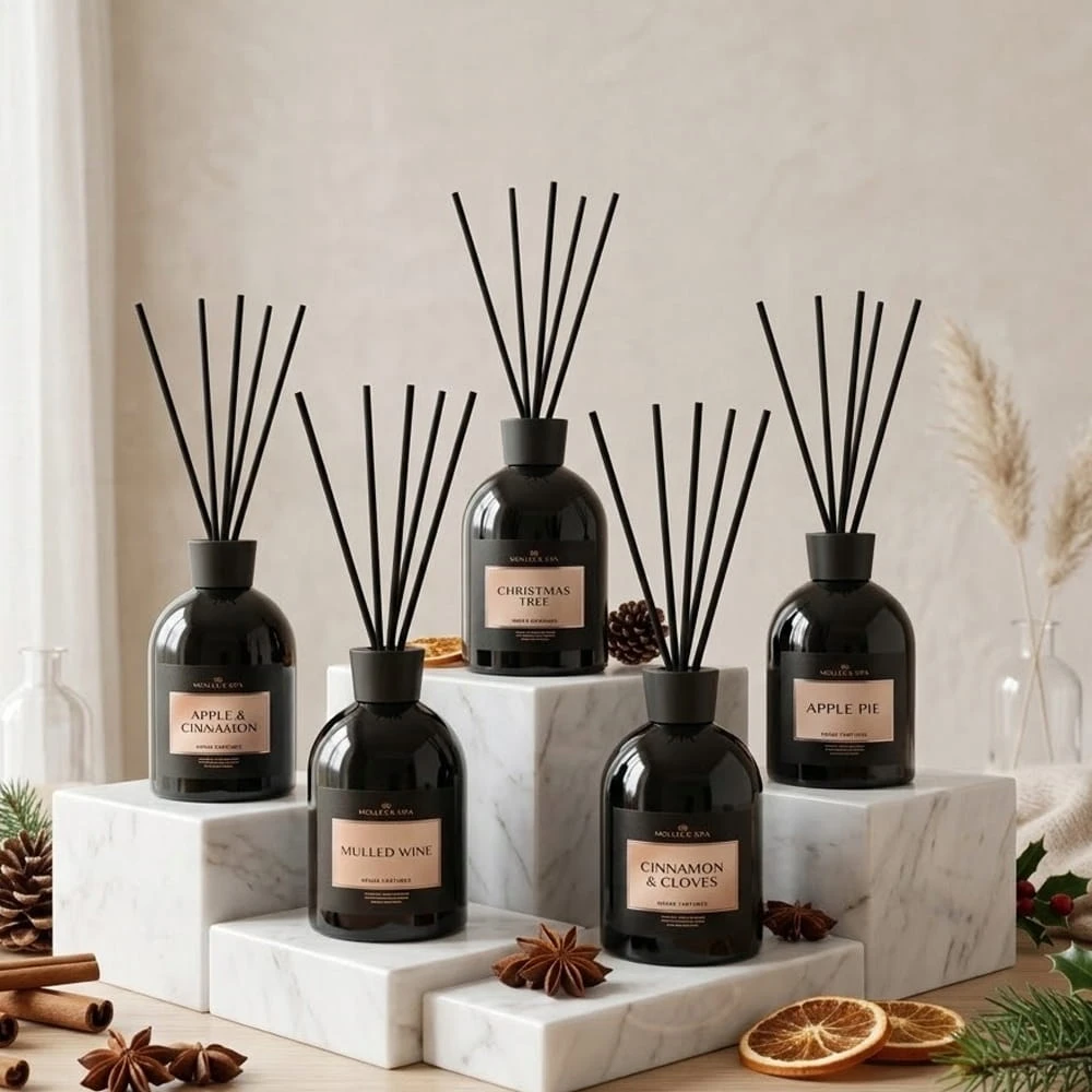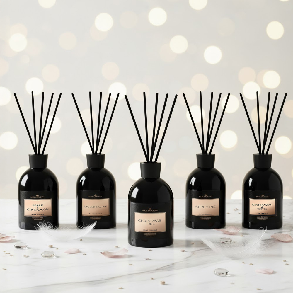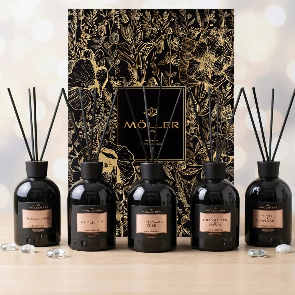W skład zestawu wchodzą dyfuzory, które wypełniają przestrzeń subtelnym świątecznym zapachem, tworząc wyjątkowy nastrój. Tworzą idealną kompozycję – zapachową symfonię, która koi zmysły, uspokaja myśli i wprowadza do wnętrza poczucie harmonii.