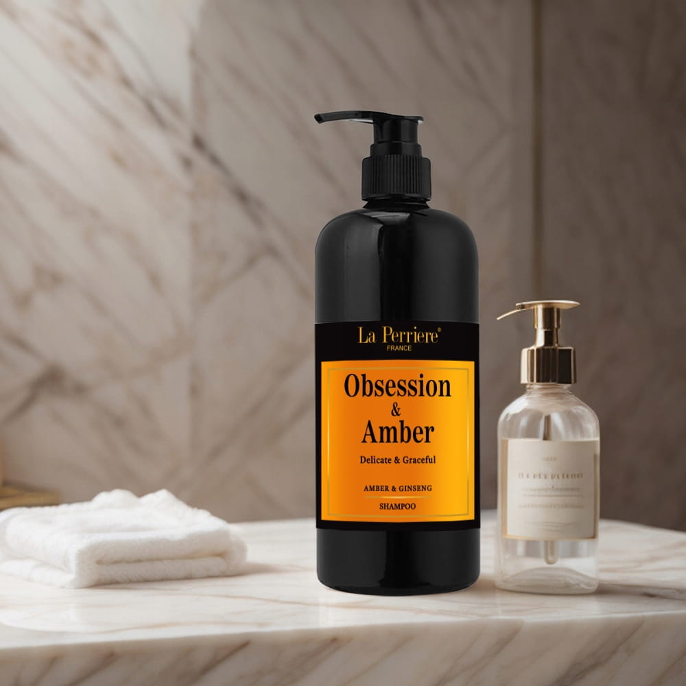 LA PERRIERE OBSESSION & AMBER SZAMPON DO WŁOSÓW Z ŻEŃ-SZENIEM 500ml PREZENT