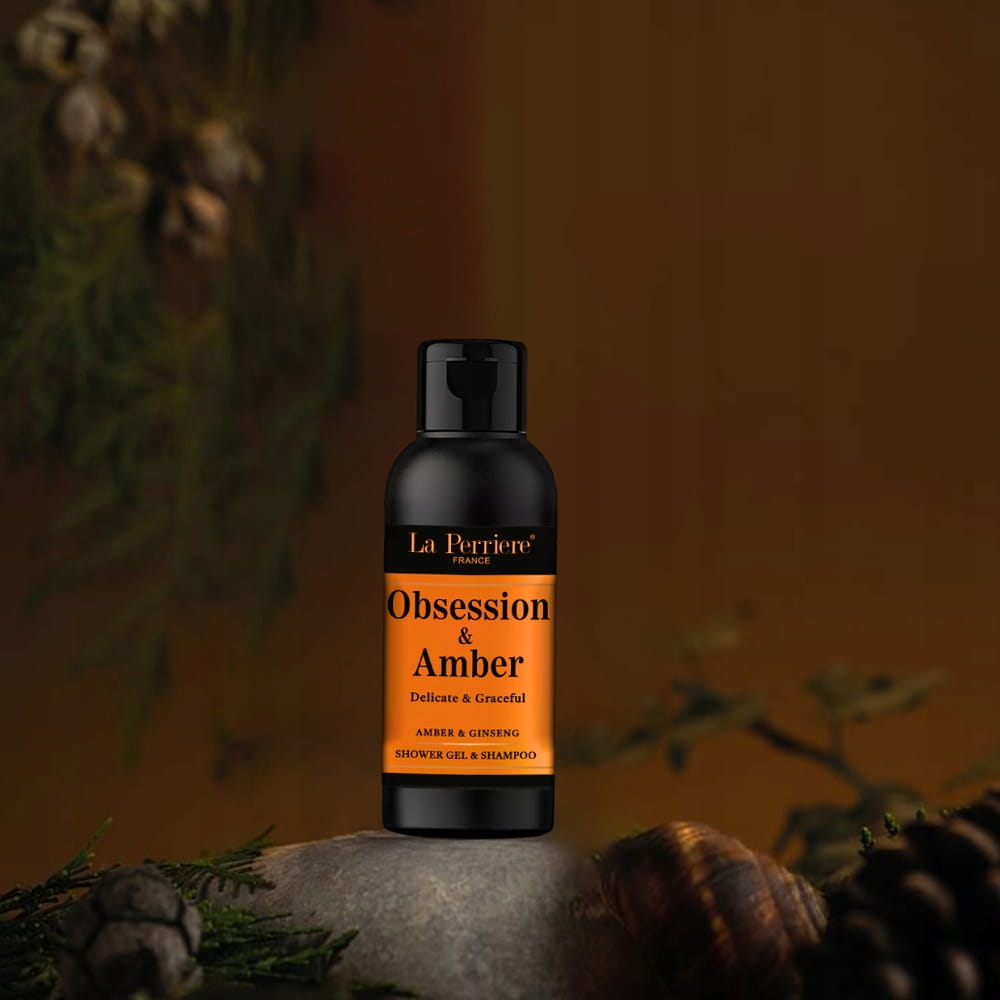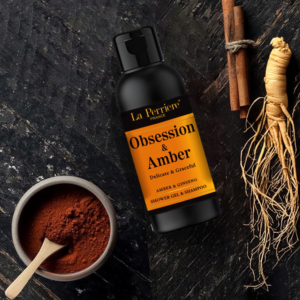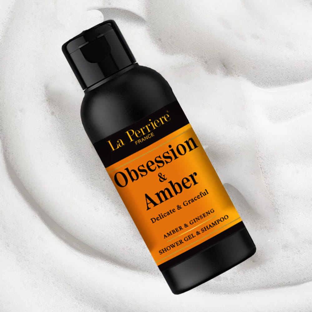 La Perriere OBSESSION & AMBER SZAMPON I ŻEL POD PRYSZNIC Z BURSZTYNEM I ŻEŃ SZENIEM 2w1100ml PODRÓŻNY ROZMIAR