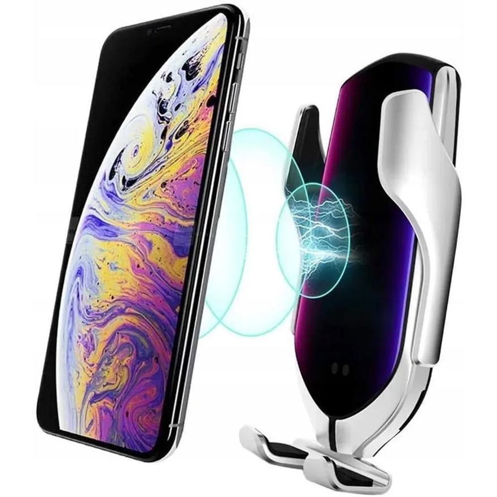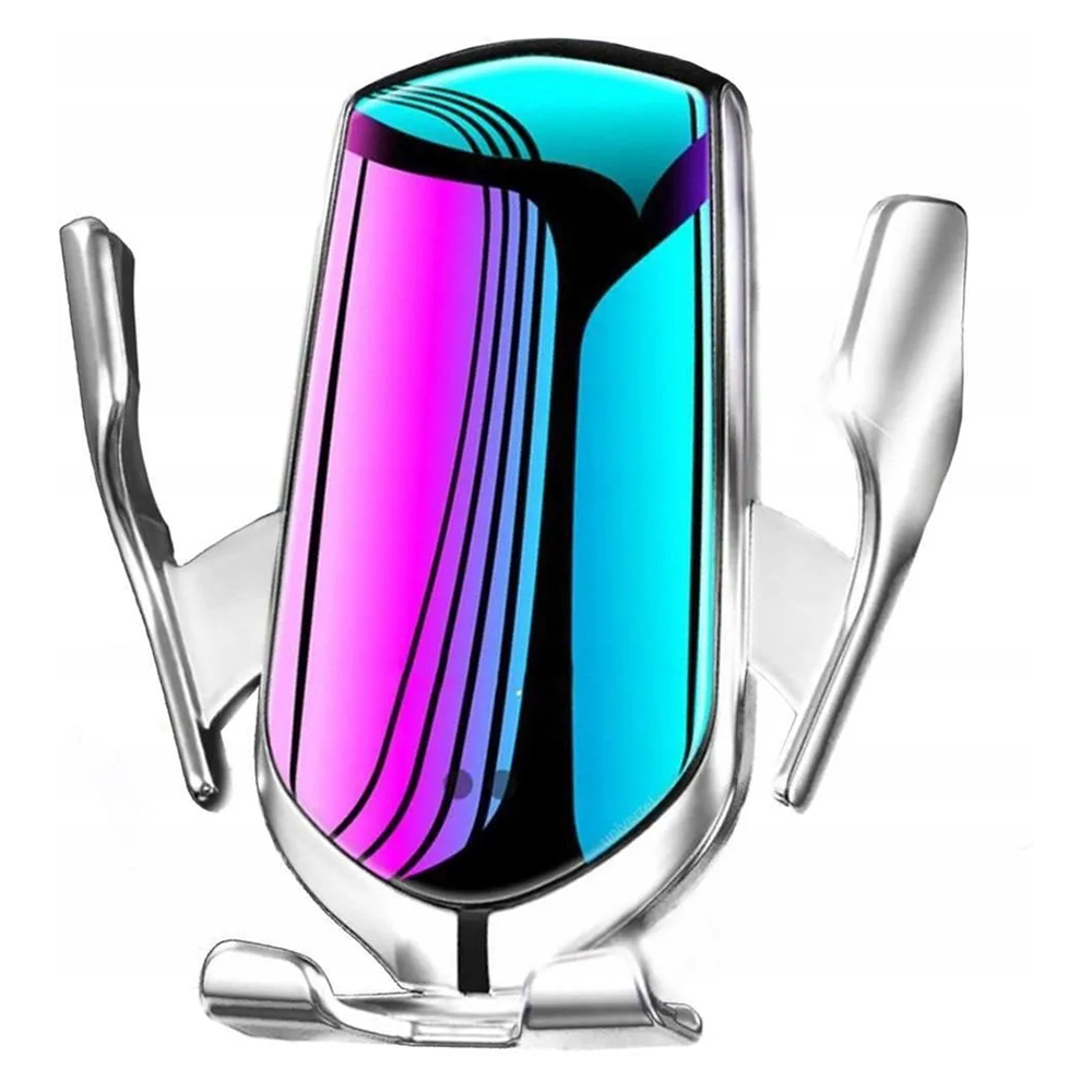 ŁADOWARKA INDUKCYJNA UCHWYT SAMOCHODOWY AUTOMAT QI SREBNY