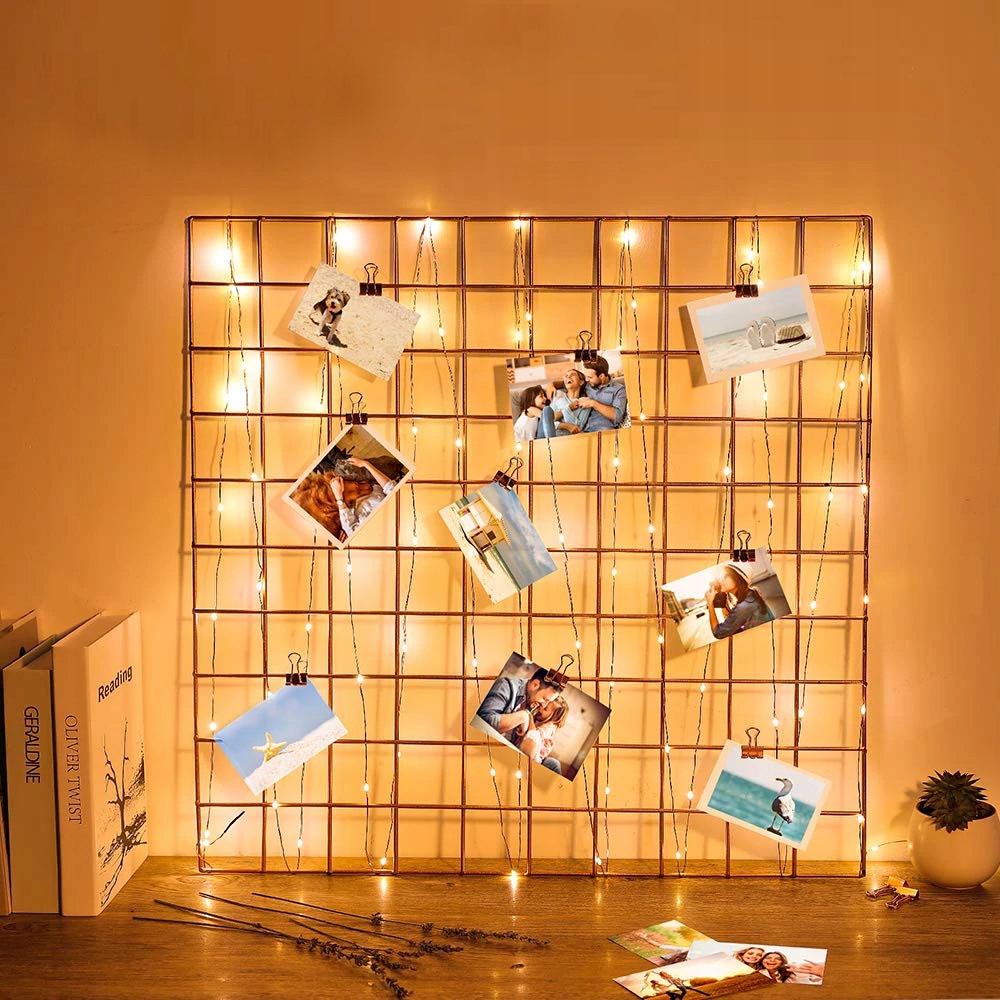 Wystarczy ramka, spinacze, zdjęcia no i lampki led. Ramkę owiń naszymi światełkami LED. Dzięki przewodowi z drucika z łatwością owiniesz ramkę według uznania. Następnie wybierz ulubione zdjęcia i powieś je na klamerkach.