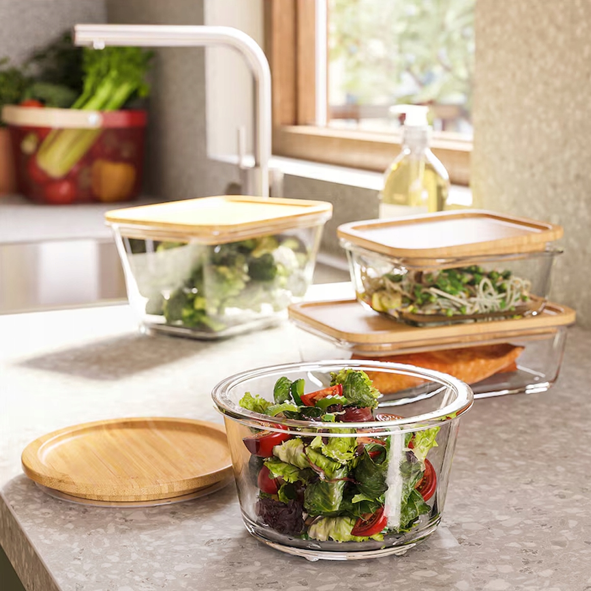 - Bezpieczne dla zdrowia – szkło nie zawiera szkodliwych substancji chemicznych, takich jak BPA, co sprawia, że lunchboxy są w pełni bezpieczne dla żywności.