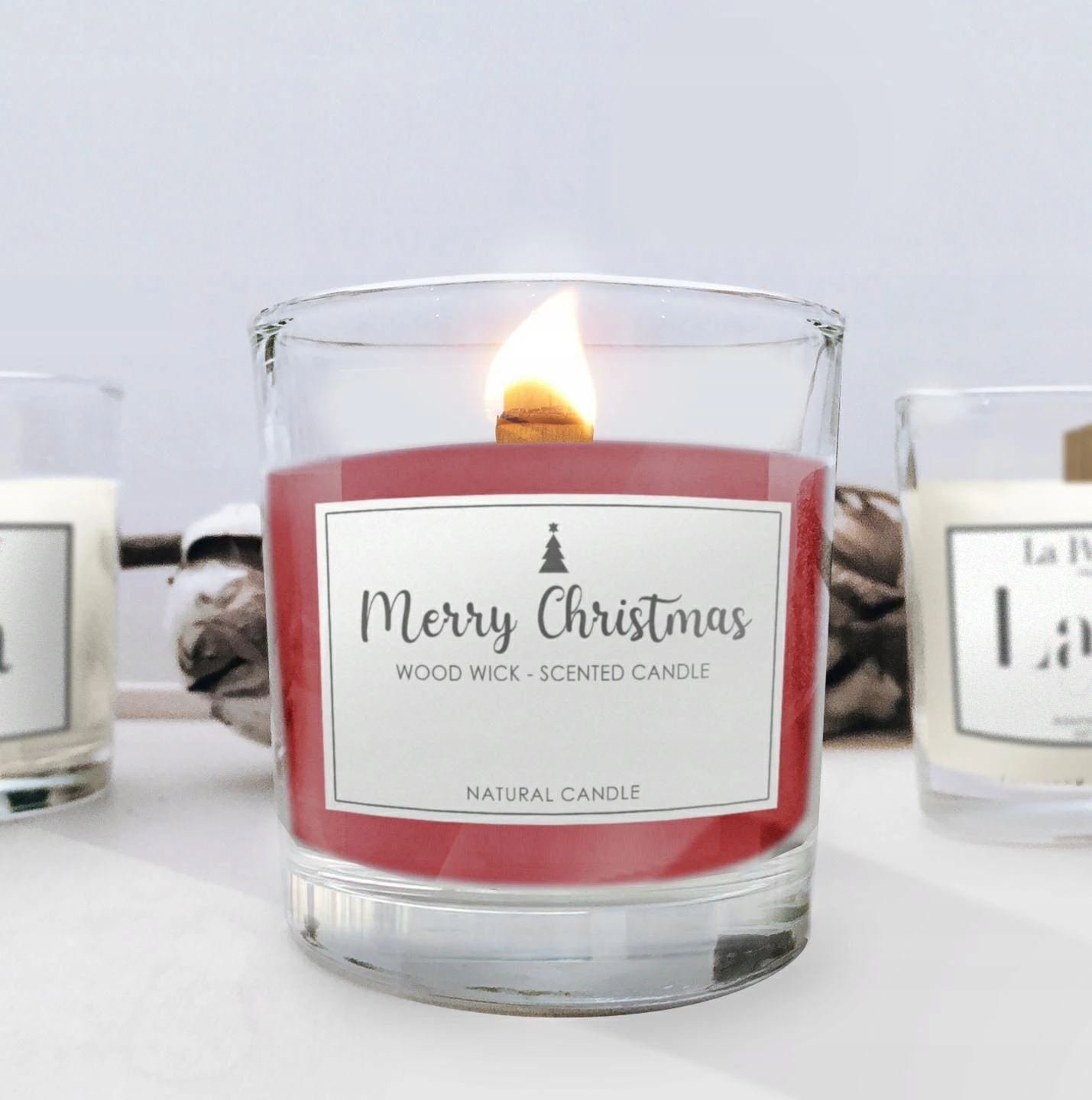 MERRY CHRISTMAS - Świąteczna Sojowa Świeca Naturalna Zapachowa w Szkle