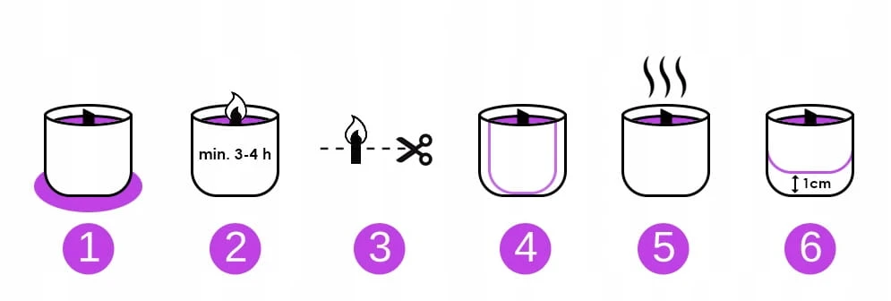 3️⃣ Przycinanie knota – od drugiego palenia skracaj knot, aby uzyskać równy, czysty płomień.
