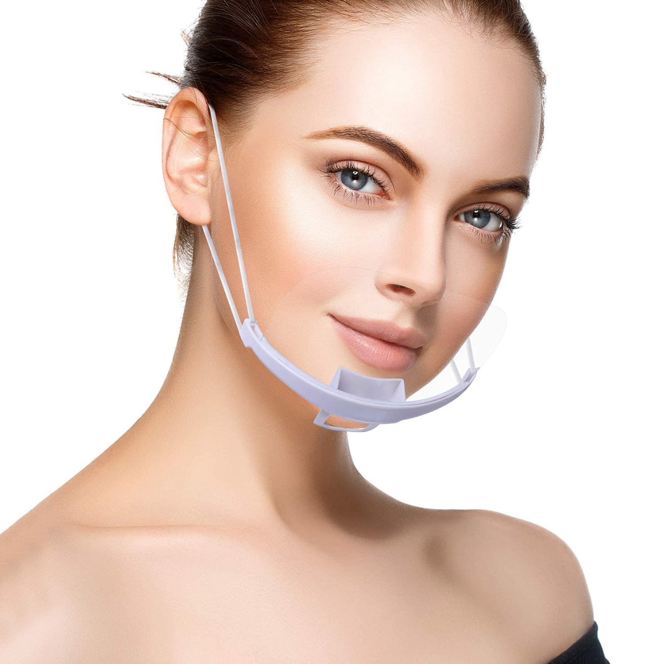 Można ją zakładać zarówno na brodę jak i nos. Maseczka świetnie sprawdzi się dla osób, którym przeszkadza noszenie maseczek na uszach. Nasze rozwiązanie jest wygodne i umożliwia dostosowanie maski do każdego rozmiaru głowy.