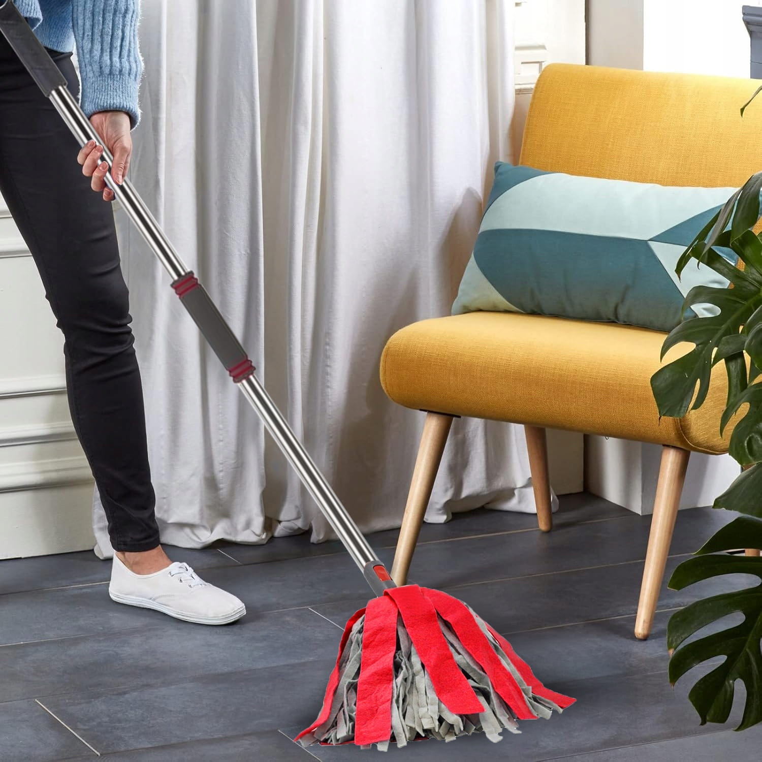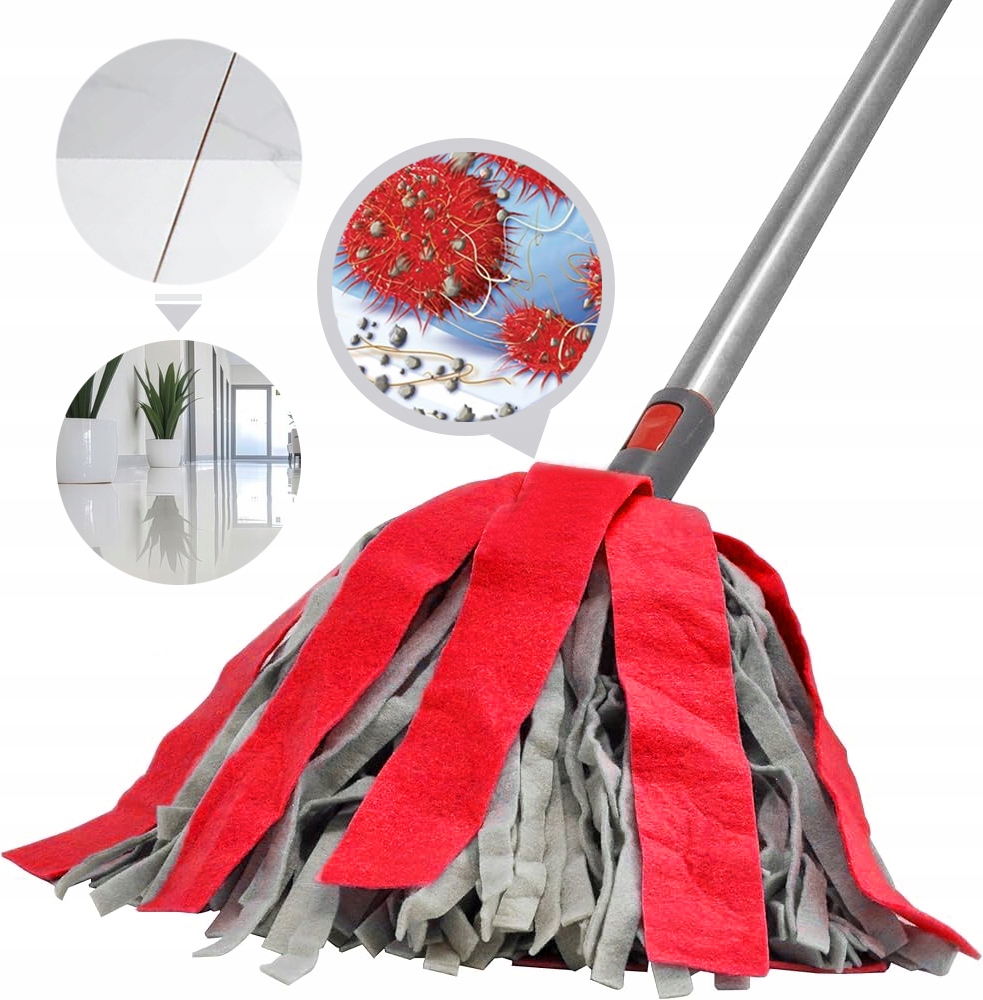 ✅ Mop wykonany z wiskozy i poliestru skutecznie usuwa brud i wodę z podłóg. Dzięki paskowej konstrukcji jest lekki, łatwy w obsłudze i nadaje się do wszystkich rodzajów podłóg, takich jak płytki, marmur, ceramika, drewno, szkło, laminaty, beton czy kamień.