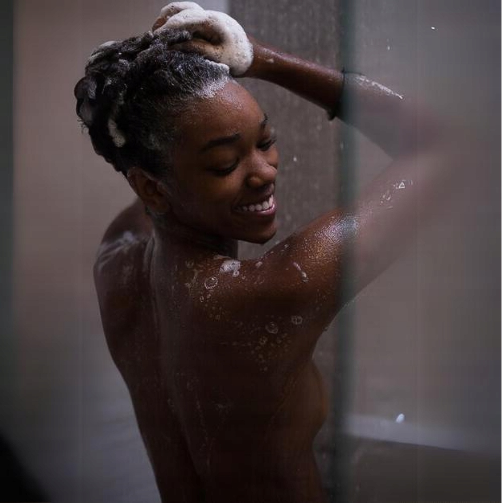 - Nałóż na dłoń niewielką ilość żelu pod prysznic.