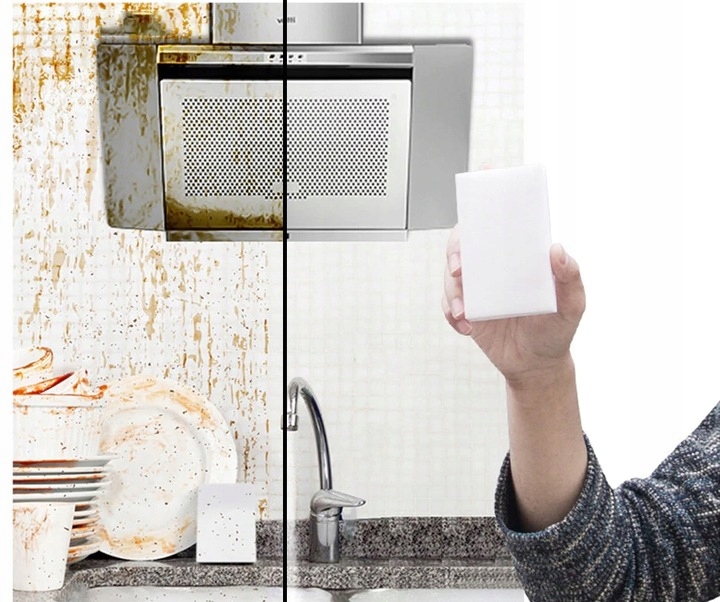 Magiczna Gąbka to produkt, który idealnie sprawdzi się w Twoim domu. Wystarczy odrobina wody, aby usunąć trudne zabrudzenia. Gąbka pozwala na skuteczne pozbycie się plam bez użycia detergentów. Sprawdzi się doskonale zarówno w przypadku śladów po długopisie, flamastrach, kredkach, jak i przy czyszczeniu brudu i zacieków na ceramice łazienkowej, fugach, płytkach ceramicznych i kamiennych, drzwiach, oknach, ścianach czy butach. Magiczna gąbka nadaje się również do usuwania zabrudzeń z wnętrza samochodu i kokpitu.
