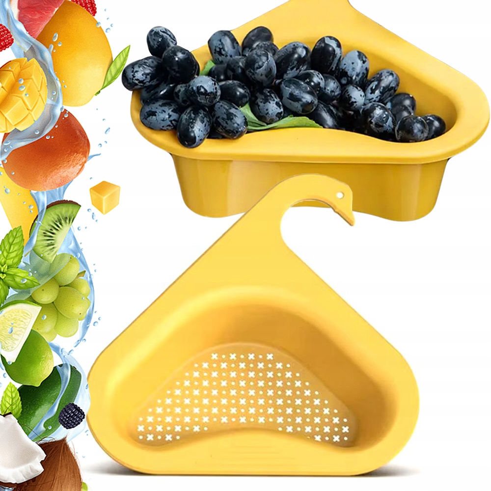 Narożny durszlak ociekacz do zlewu to praktyczne akcesorium kuchenne, które służy do odsączania wody z umytych owoców, warzyw, makaronów, czy naczyń. Sprawdza się także do odcedzania resztek żywności czy fusów po kawie lub herbacie, by nie zatykały odpływu.
