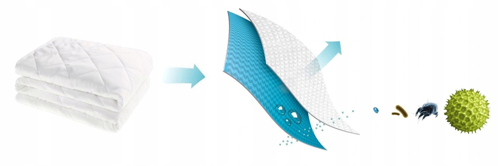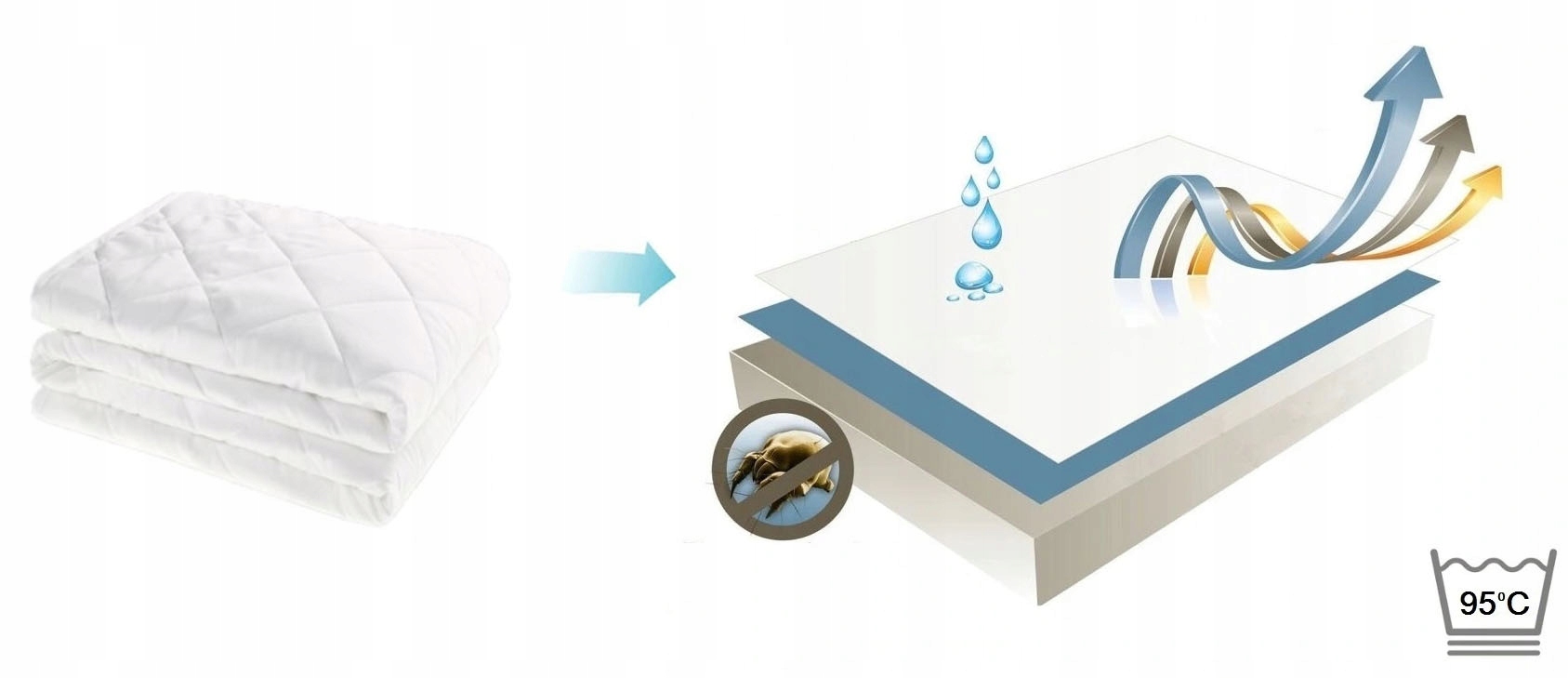 Ochraniacz stanowi doskonałą barierę zabezpieczającą materac przed rozwojem bakterii oraz roztoczy. Produkt jest wielokrotnego użytku. W rogach ochraniacza znajdują się gumy do wygodnego umocowania do materaca – ochraniacz zawsze pozostanie na swoim miejscu. Podczas zwykłego użytku zalecamy pranie w temp. 95°C.