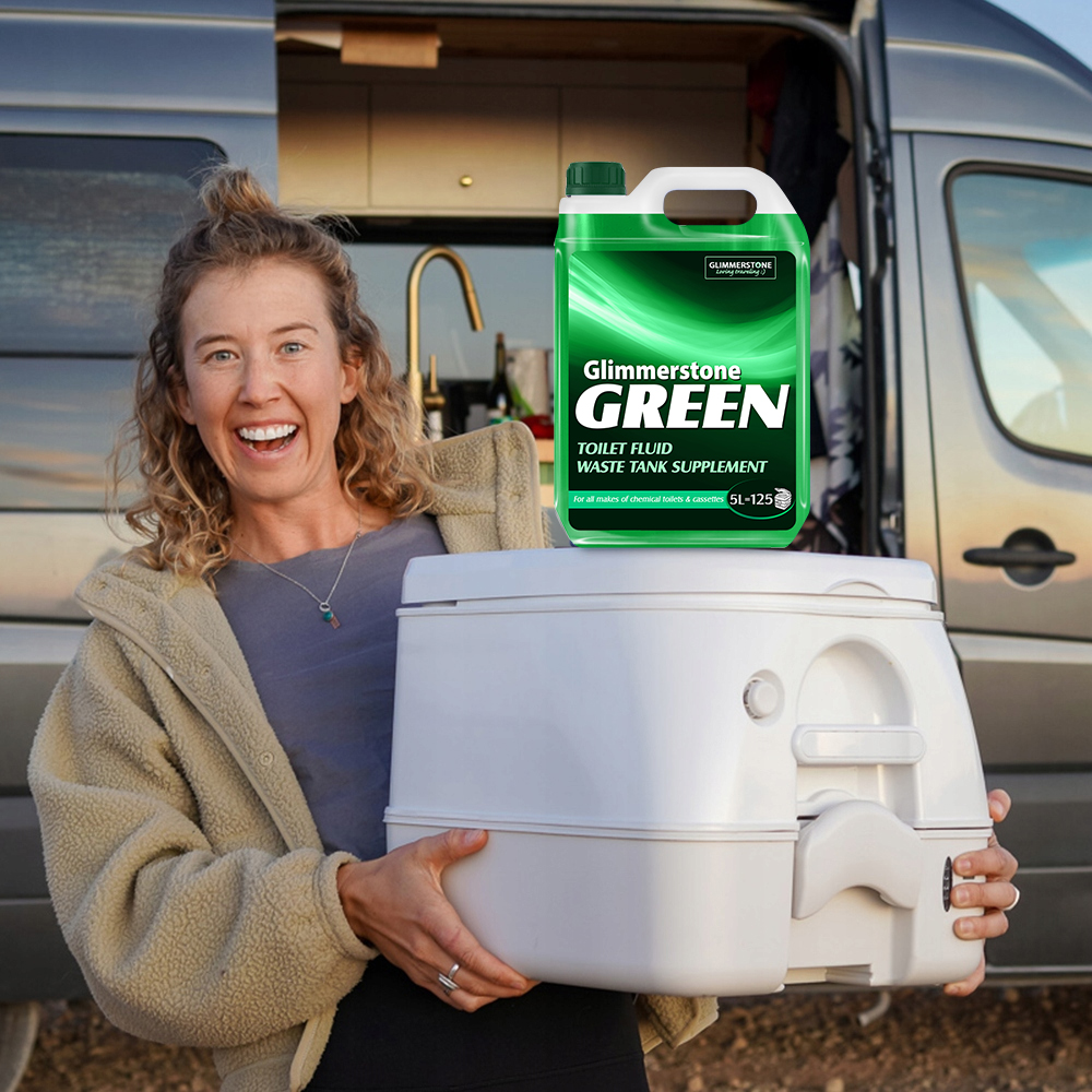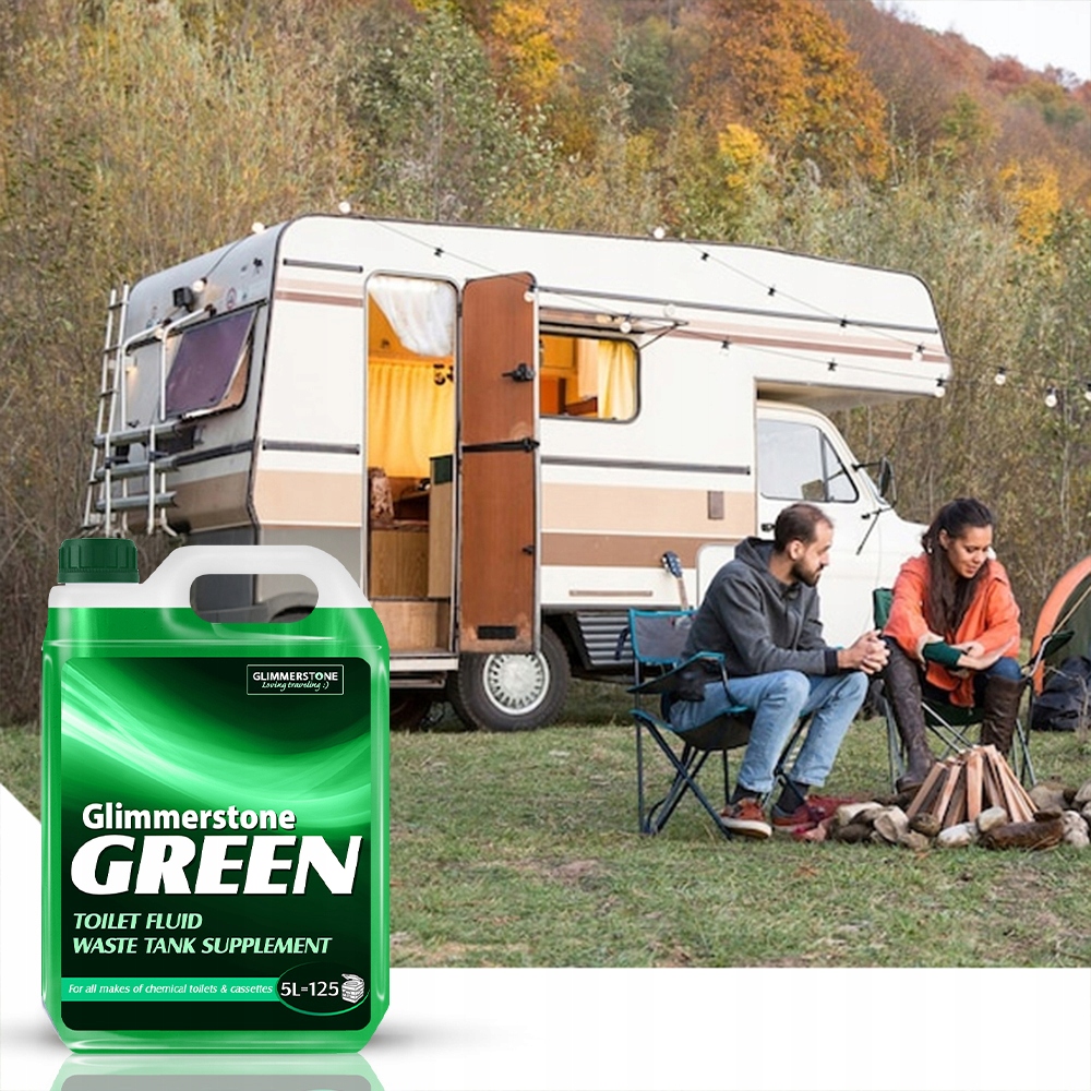 Płyn do toalet turystycznych Glimmerstone to skoncentrowany płyn, rozkłada zawartość w zbiornikach na fekalia w przenośnych toaletach oraz stałych urządzeniach toaletowych w przyczepach kempingowych i na jachtach.