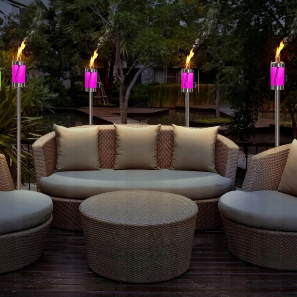 Pochodnie ogrodowe dają delikatne, nastrojowe światło idealne do wypoczynku.