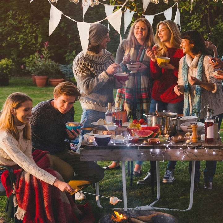 Pochodnie ogrodowe mogą być wykorzystane jako oświetlenie, które tworzy przyjemną atmosferę podczas wieczornych spotkań.
