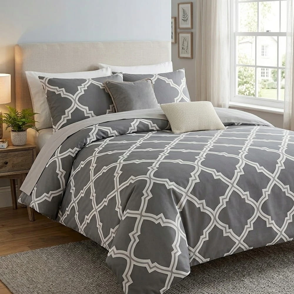 Zestaw prezentuje się w sypialni wyjątkowo nowocześnie i stylowo. Miękka i lekka tkanina przyjemnie otula skórę, zapewniając komfortowy sen. Specjalna technika tkania sprawia, że włókna są bardziej wytrzymałe, a jednocześnie miłe w dotyku.