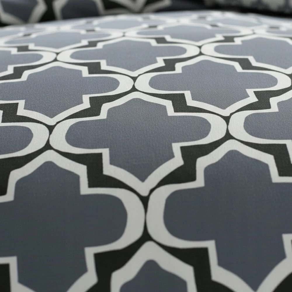 Zestaw prezentuje się w sypialni wyjątkowo nowocześnie i stylowo. Miękka i lekka tkanina przyjemnie otula skórę, zapewniając komfortowy sen. Specjalna technika tkania sprawia, że włókna są bardziej wytrzymałe, a jednocześnie miłe w dotyku.