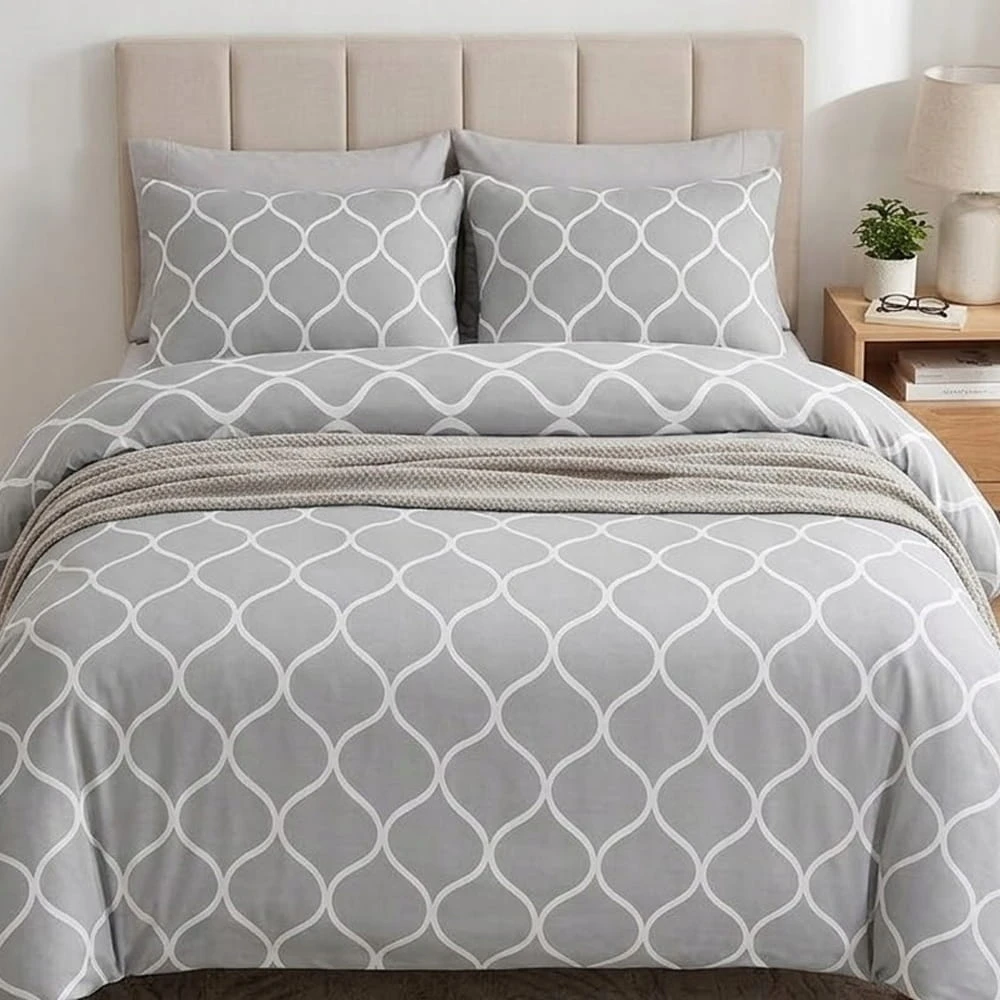 Zestaw prezentuje się w sypialni wyjątkowo nowocześnie i stylowo. Miękka i lekka tkanina przyjemnie otula skórę, zapewniając komfortowy sen. Specjalna technika tkania sprawia, że włókna są bardziej wytrzymałe, a jednocześnie miłe w dotyku.