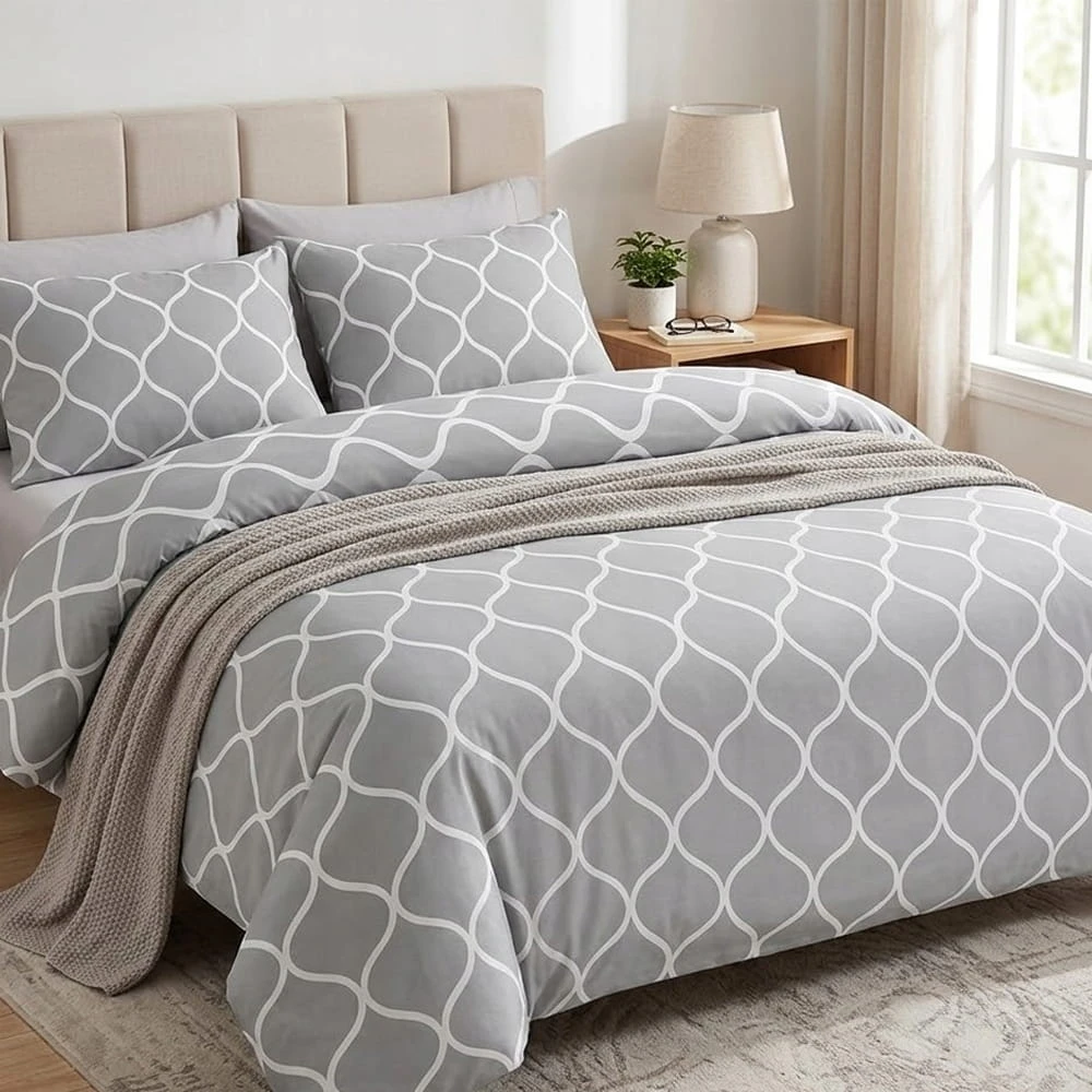 Zestaw prezentuje się w sypialni wyjątkowo nowocześnie i stylowo. Miękka i lekka tkanina przyjemnie otula skórę, zapewniając komfortowy sen. Specjalna technika tkania sprawia, że włókna są bardziej wytrzymałe, a jednocześnie miłe w dotyku.