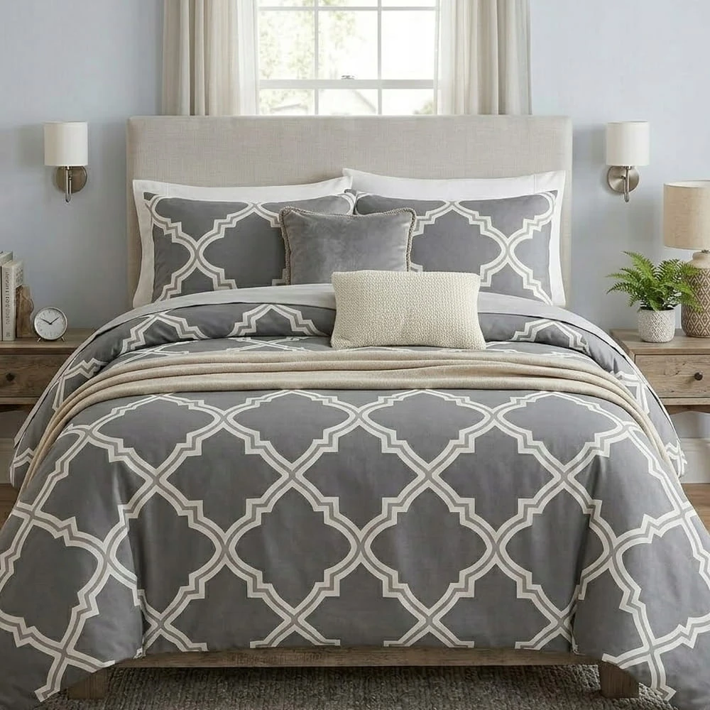 Zestaw prezentuje się w sypialni wyjątkowo nowocześnie i stylowo. Miękka i lekka tkanina przyjemnie otula skórę, zapewniając komfortowy sen. Specjalna technika tkania sprawia, że włókna są bardziej wytrzymałe, a jednocześnie miłe w dotyku.