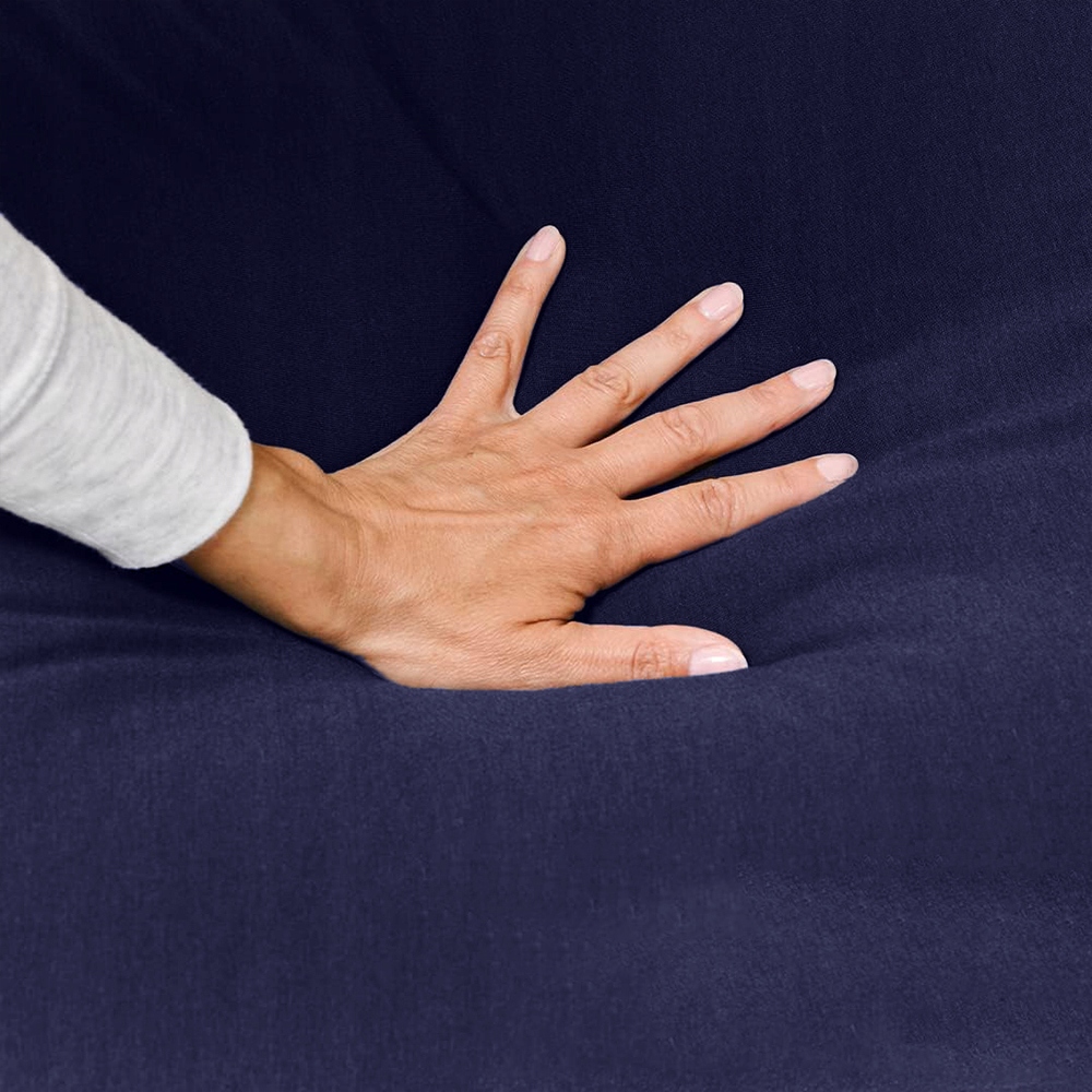 Jest lekka i ma aksamitne obicie. Rdzeń podnóżka jest wyposażony w nadmuchiwaną komorę, którą można nadmuchać za pomocą zaworu wydmuchowego. Krótko mówiąc, idealny podnóżek do relaksu.