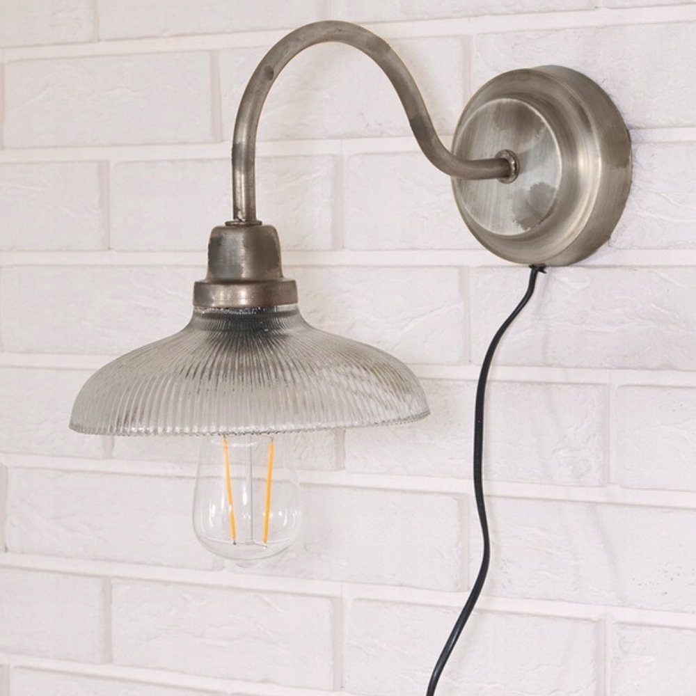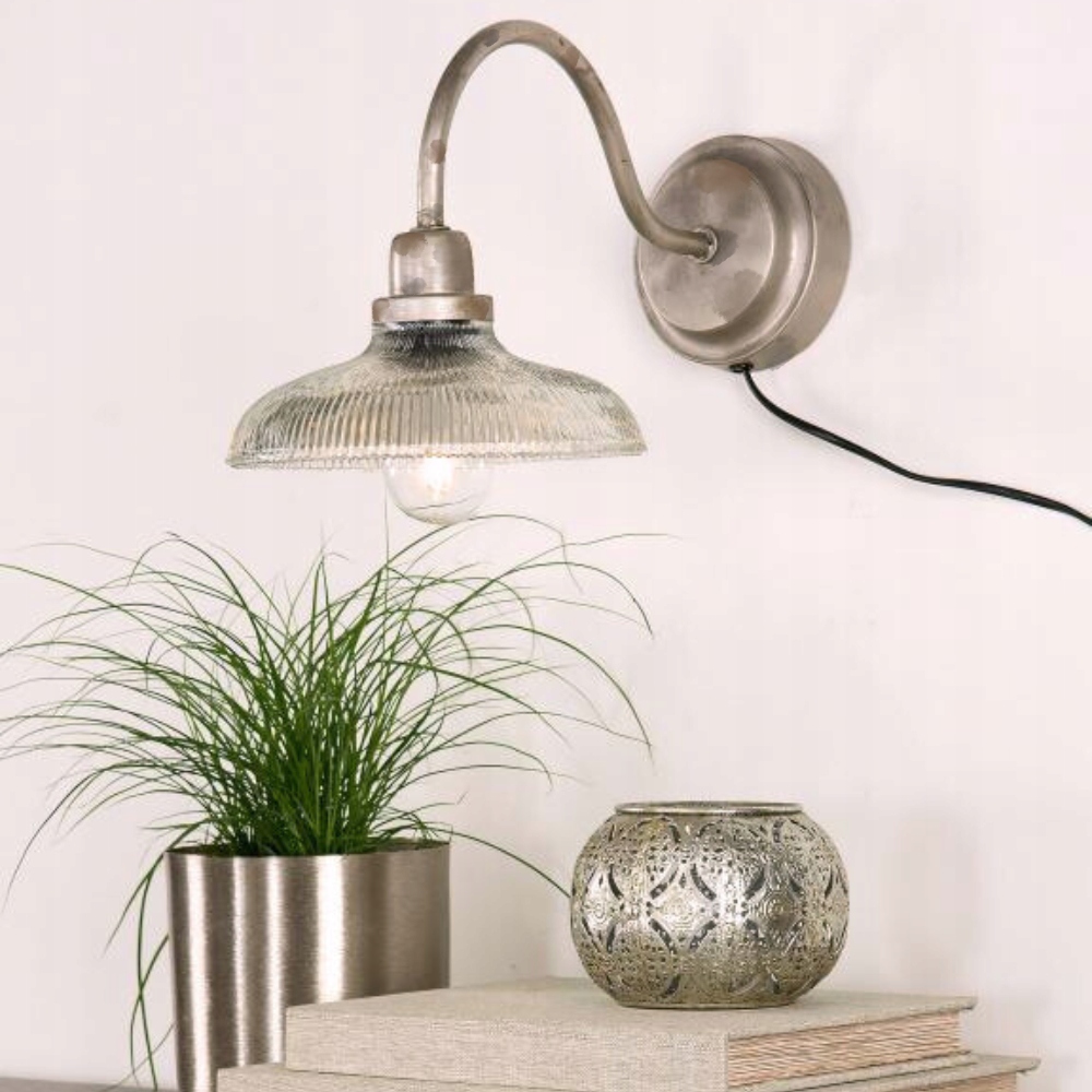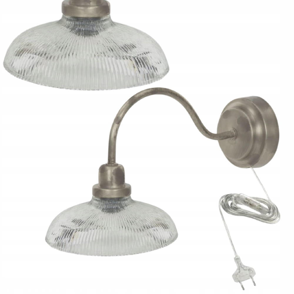 SREBRNA LAMPA ŚCIENNA KINKIET ELEGANCKA METALOWA VINTAGE RETRO LOFT E27