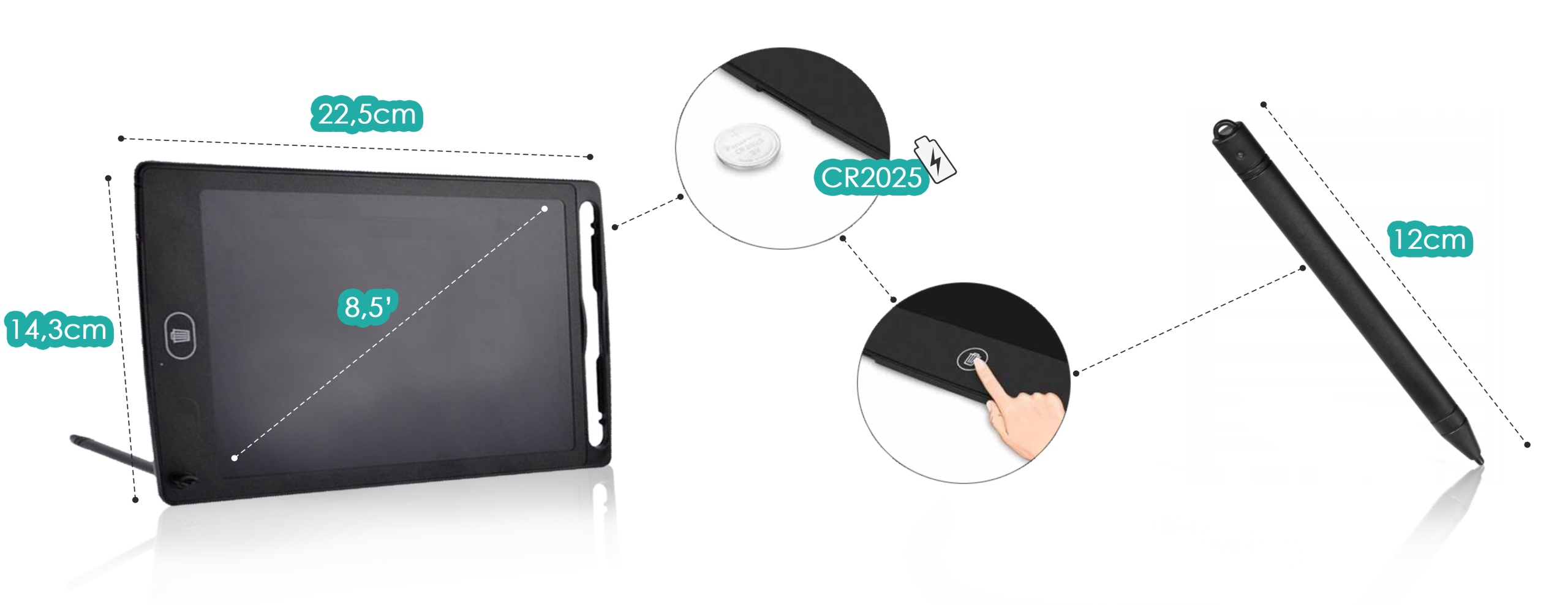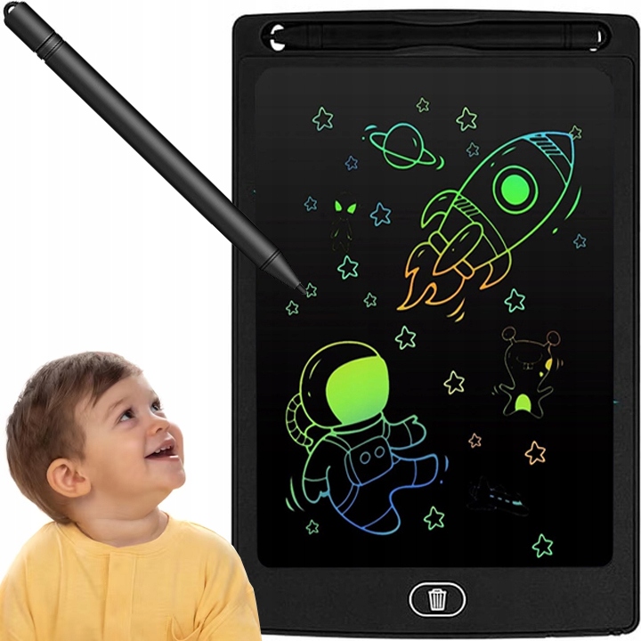 ✅ Elektroniczny tablet do rysowania wyposażony w 8,5” ekran LCD, po którym można swobodnie pisać lub rysować dołączonym rysikiem.