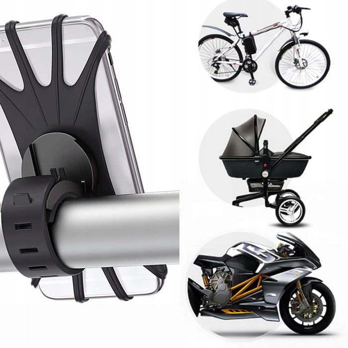 Uniwersalny uchwyt rowerowy idealnie nadaje się do montażu na kierownicy roweru lub motoru.
