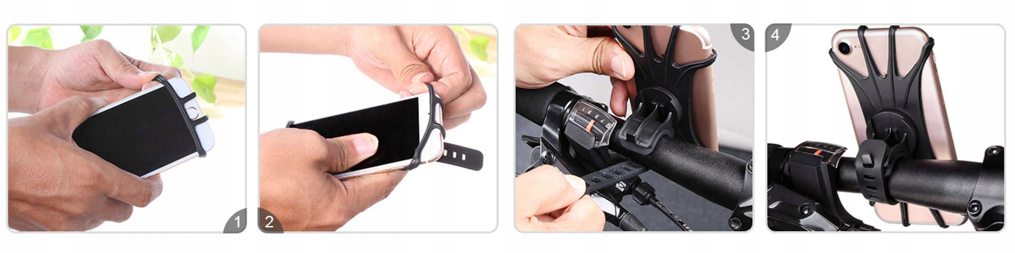 Uniwersalny uchwyt rowerowy na kierownicę, pasuje do większości modeli telefonów z ekranem o przekątnej od 4-6,3". Uchwyt montowany jest do kierownicy przy pomocy niezwykle elastycznego paska.