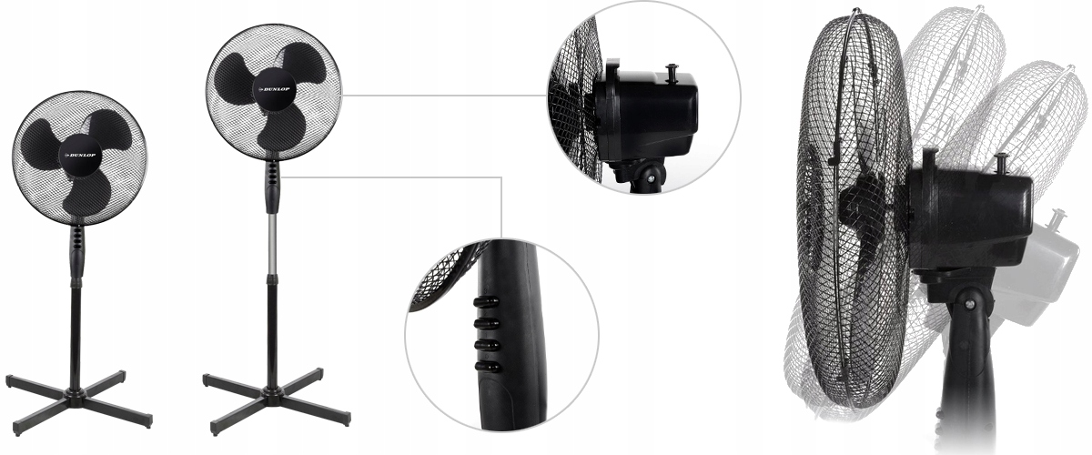 Zaletą wentylatora jest funkcja oscylacji (automatycznej zmiany kierunku nawiewu) z możliwością zablokowania.
