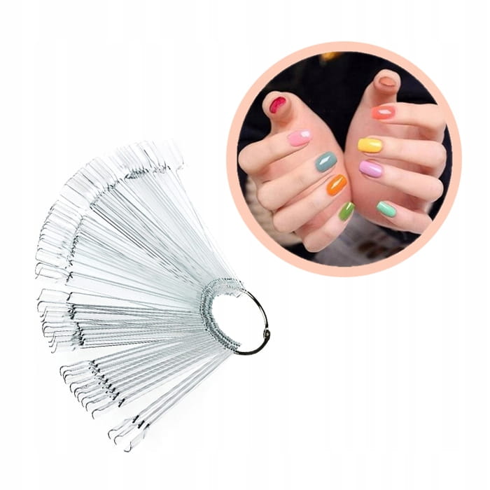 Praktyczny, wzornik na kole, wyjątkowo pomocny podczas wybierania koloru lakieru albo wzoru na paznokcie. To bardzo czytelna, wygodna oraz estetyczna paleta do malowania lakierami, hybrydami, żelami. Wszystkie wzorniki w tym modelu są zawieszone na srebrnym kole, dzięki czemu można swobodnie dołożyć pomalowany paznokieć do swojego i sprawdzić czy kolor będzie odpowiedni. Paleta zawiera 50 sztuk pojedynczych wzorników.