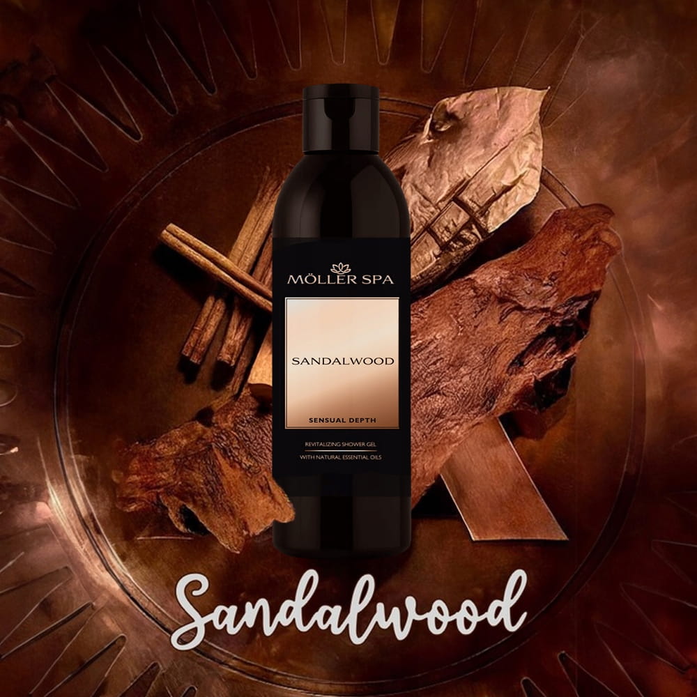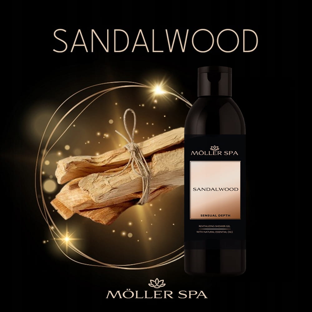 Möller SPA Sandalwood - głęboko regenerujący, kojący zmysły żel pod prysznic o orientalnym zapachu. Formuła inspirowana mocą drzewa sandałowego, skutecznie nawilży i regeneruje Twoją skórę. Zapewni wszechstronną pielęgnację oraz pozostawi na skórze długotrwały, szykowny zapach.